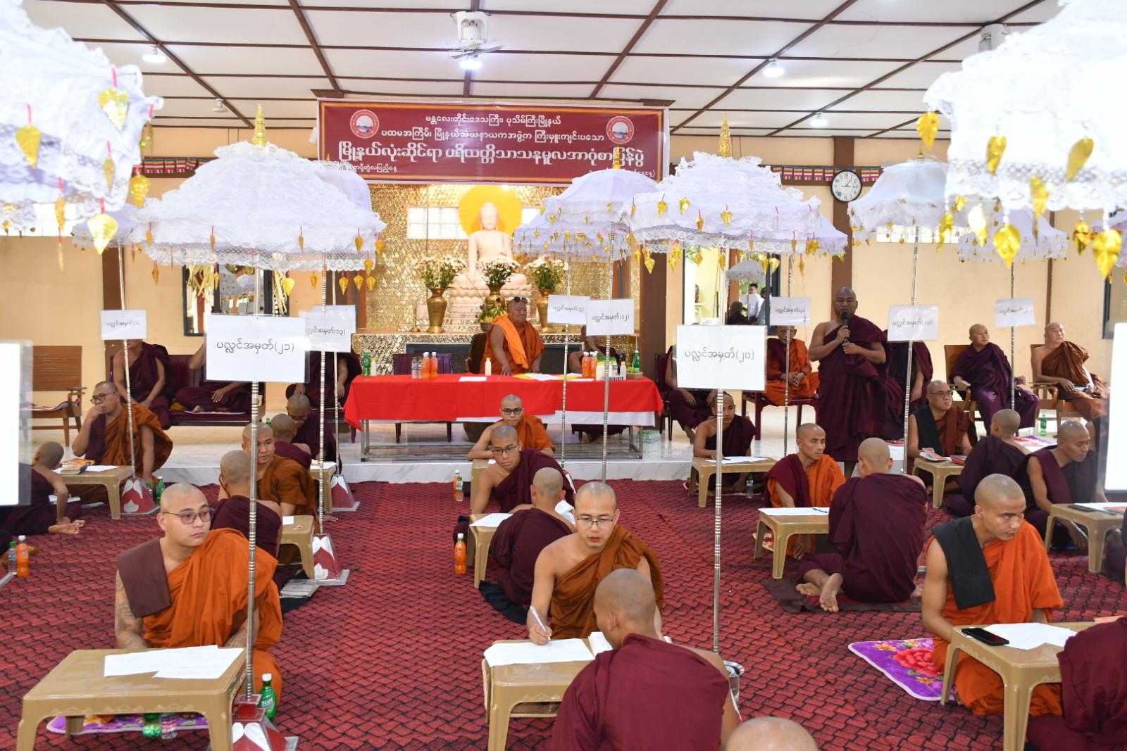မန္တလေးတိုင်းဒေသကြီး၊ ပုသိမ်ကြီးမြို့နယ်၊ ပထမအကြိမ် မြို့နယ်သံဃနာယကအဖွဲ့က ကြီးမှူးကျင်းပသော မြို့နယ်လုံးဆိုင်ရာ ပရိယတ္တိသာသနမူလ အာဂုံစာပြန်ပွဲအခမ်းအနားကို ယနေ့ နေ့လယ် ၁ နာရီက သီရိမင်္ဂလာသရက်တောကျောင်းတိုက်ရှိ ရွှေရတနာဗိမာန်တာ်၌ ကျင်းပရာ နိုင်ငံတော်ဗဟိုသံဃဝန်ဆောင် ဆရာတော် ဘဒ္ဒန္တပညာဝံသ၊ တိုင်းသံဃနာယက ဆရာတော် ဘဒ္ဒန္တဃောသိတ၊ မြို့နယ်သံဃနာယက ဥက္ကဋ္ဌ ဆရာတော် ဘဒ္ဒန္တဥတ္တမ၊ စာမေးပွဲကျင်းပရေးအဖွဲ့ဥက္ကဋ္ဌ၊ ဆရာတော်ဘဒ္ဒန္တစန္ဒနသာရနှင့် အဖွဲ့ဝင်ဆရာတော်ကြီးများ ပရိယတ္တိသာသနမူလ အာဂုံစာပြန်ပွဲသို့ ကြွရောက်တော်မူကြသည်။