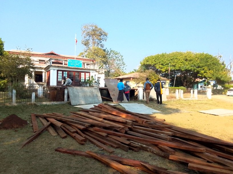 ထိုသို့ဆောင်ရွက်ရာတွင် မြို့နယ်စီမံခန့်ခွဲရေးနှင့်အုပ်ချုပ်ရေးကော်မတီဥက္ကဋ္ဌ ဦးဝင်းမြင့်နှင့် ဌာနဆိုင်ရာတာဝန်ရှိသူများက လာရောက်ကြီးကြပ်ပေးလျက်ရှိရာ ဆောက်လုပ်ရေးအဖွဲ့ဝင်များက စင်ခိုင်ခန့်မှုရှိစေရေး စနစ်တကျ ဝိုင်းဝန်းဆောင်ရွက်လျက်ရှိကြောင်း သိရသည်။