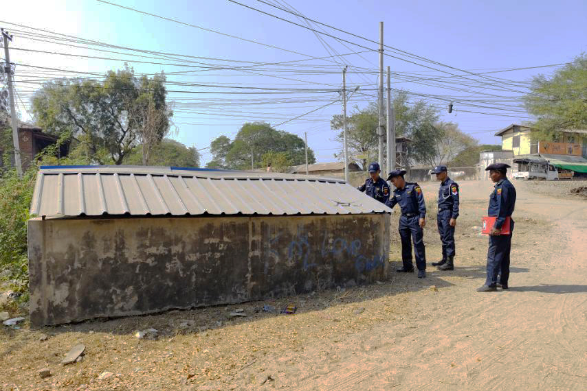 ကွင်းဆင်းစစ်ဆေးဆောင်ရွက်ရာတွင် မြို့နယ်မီးသတ်ဦးစီးမှူး ဦးထွန်းထွန်းဝင်းနှင့် သန္ဓေမီးသတ်တပ်ဖွဲ့ဝင်များ၊ အရန်မီးသတ်တပ်ဖွဲ့ဝင်များက မီးသတ်ရေလှောင်ကန်များ၏ အကျယ်အဝန်း၊ ရေသိုလှောင်ဝင်ဆံ့နိုင်သည့် ပမာဏတို့ကို တိုင်းတာခြင်းများ ဆောင်ရွက်ပြီး ရေဖြည့်တင်းရန် လိုအပ်သည့်ကန်များကို ရေဖြည့်တင်းနိုင်ရန် ဆောင်ရွက်လျက်ရှိကြောင်းသိရသည်။ မြို့ပေါ်ရပ်ကွက်များ၌ စုစုပေါင်းရေဂါလံ ၃၁၉၀၀ ဆံ့ မြေပေါ်အုတ်ရေလှောင် ကန် ၈ ခု၊ စုစုပေါင်းရေဂါလံ ၁၆၅၀၀ ဆံ့ ရေစင် ၂ ခုနှင့် စုစုပေါင်းရေဂါလံ ၃၂၃၇၅၀ ဆံ့ မြေအောက်အုတ်ရေကန် ၅ ခုတို့ရှိကြောင်း သိရသည်။