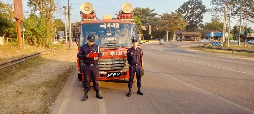 အသိပညာပေးနှိုးဆော်ရာတွင် ပွင့်လင်းရာသီ ရောက်ရှိလာပြီဖြစ်၍ ပြည်သူများမီးဘေးအန္တရာယ်မှကင်းဝေးစေရေးအတွက်မိမိနေအိမ်၊ဌာန၊လုပ် ငန်းများတွင် မီးကိုလုံးဝပေါ့ဆစွာ မသုံးစွဲကြပါရန်နှင့် မီးလောင်မှုမဖြစ်ပွားအောင် မီးဘေးအန္တရာယ်ကို နေ့စဉ်သတိပြု၍ ကြိုတင်ကာကွယ်ခြင်းဖြင့်အနိုင် ယူသွားကြပါရန်သတိပေးနှိုးဆော်ခြင်းများ ဆောင်ရွက်လျက်ရှိကြောင်း သိရသည်။