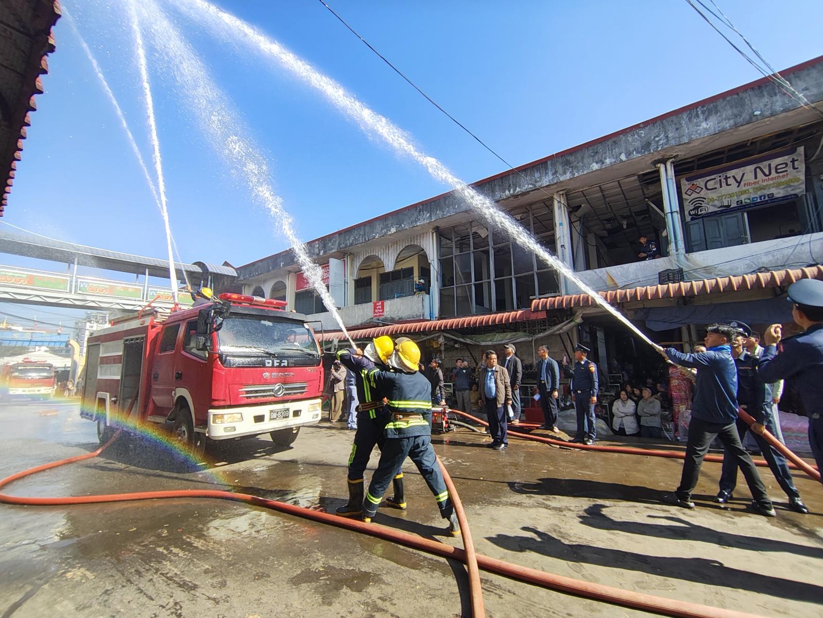 ရှမ်းပြည်နယ် (မြောက်ပိုင်း)၊ လားရှိုးတွင် ခရိုင်မီးဘေးလုံခြုံရေးအဖွဲ့မှဦးဆောင်၍ မြို့မဈေးကြီး၌ မီးဘေးအန္တရာယ်ကြိုတင်ကာကွယ်ရေး စစ်ဆေးခြင်းနှင့် လက်တွေ့သရုပ်ပြဇာတ်တိုက်လေ့ကျင့်ခြင်းကို ဖေဖော်ဝါရီလ ၆ ရက်နေ့ နံနက်ပိုင်းက လားရှိုးမြို့ အမှတ် (၂) ရပ်ကွက်ရှိ မြို့မဈေးကြီး၌ ဆောင်ရွက်ခဲ့သည်။