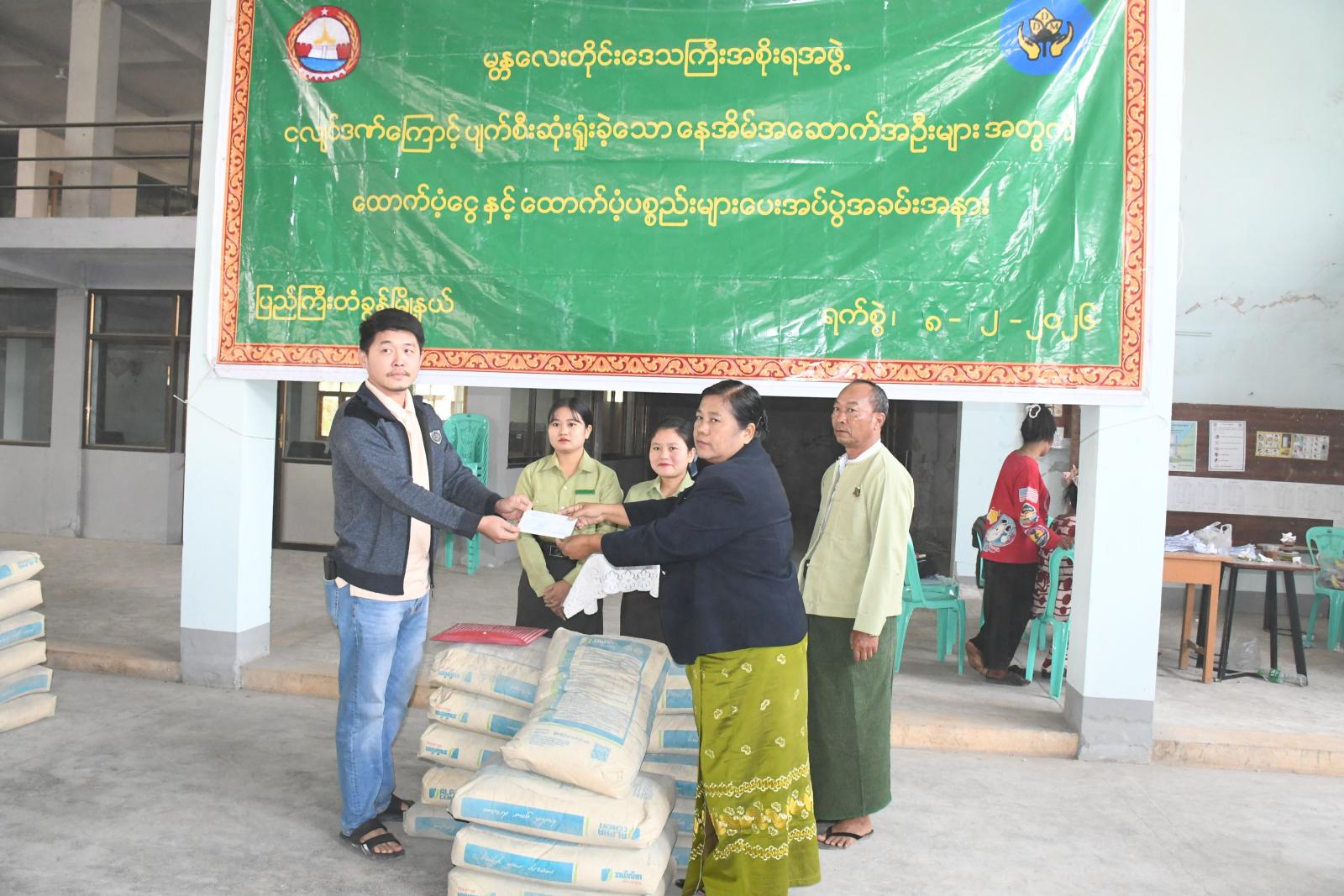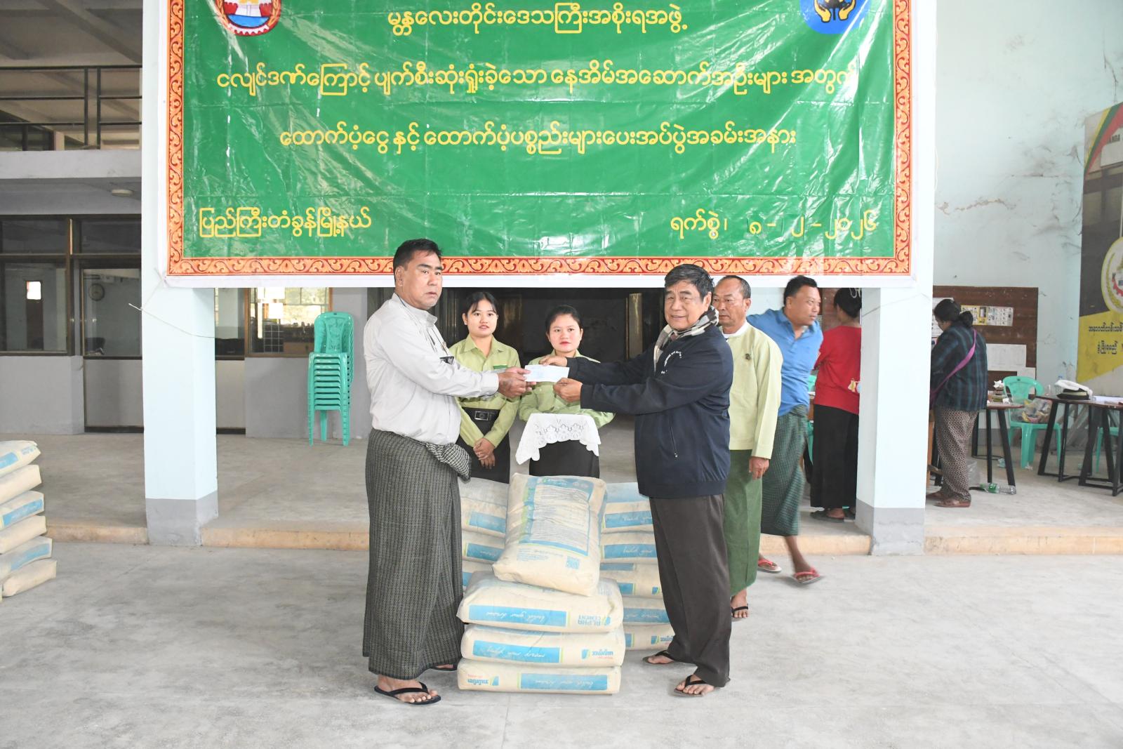 အဆိုပါ ထောက်ပံ့ပေးအပ်ရာတွင် ပြည်ကြီးတံခွန်မြို့နယ် (၁၈)ရပ်ကွက်အတွင်းရှိ မန္တလေးငလျင်ဒဏ်ကြောင့် ထိခိုက်ပျက်စီးခဲ့သော တစ်စိတ်တစ်ပိုင်းနှင့် လုံးဝပျက်စီး တစ်ထပ်တိုက်၊ နှစ်ထပ်တိုက်၊ သုံးထပ်တိုက်နေအိမ်များအတွက် သွပ်၊ ဘိလပ်မြေ၊ သံချောင်းနှင့် ငွေသားချက် လက်မှတ်များအား မြို့နယ်စီမံခန့်ခွဲရေးနှင့် အုပ်ချုပ်ရေးကော်မတီအဖွဲ့ဝင်များက မိသားစုဝင် ပြည်သူများအား ထောက်ပံ့ပေးအပ်ခဲ့ကြောင်း သိရသည်။
