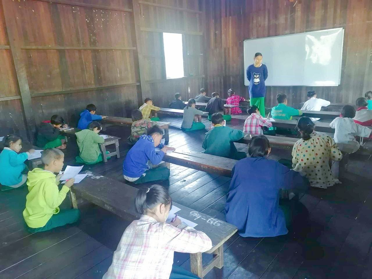 စာမေးပွဲဖြေဆိုရာ၌ ကျောင်းသား/ ကျောင်းသူများ စိတ်ချမ်းမြေ့အဆင်ပြေစွာ ဖြေဆိုနိုင်ရန် ကျောင်းအုပ်ဆရာမကြီး ဒေါ်နှင်းဝေဦးနှင့် ဆရာ/ဆရာမများက စနစ်တကျ ကြီးကြပ်ကျင်းပပေးလျက်ရှိကြောင်း သိရသည်။