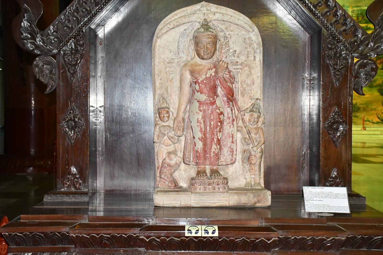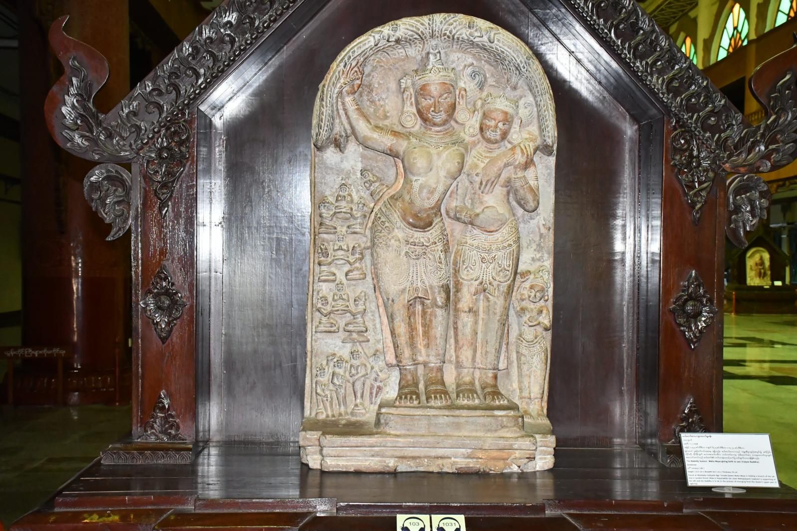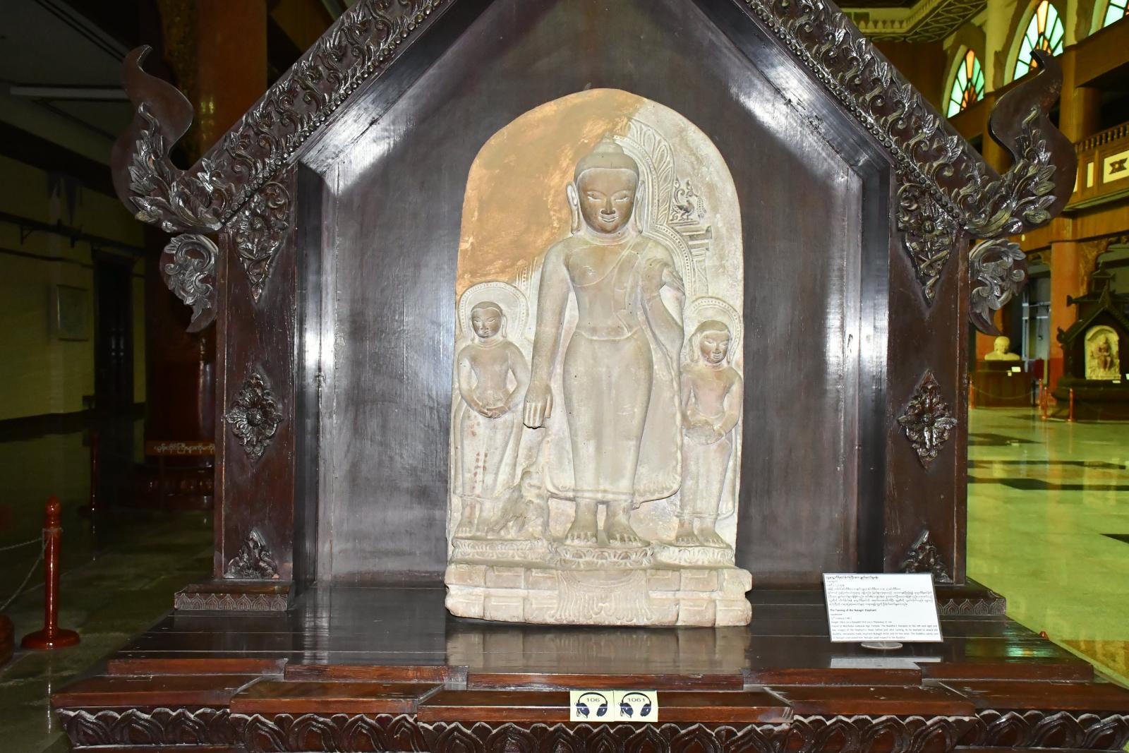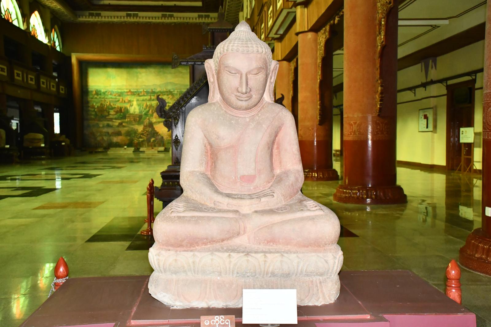 အထူးပင်မပြခန်းတွင် ကြီးမားသောသုံးဘက်မြင် ပုဂံရှုခင်းပုံနံရံပန်းချီကားချပ်၊ သဲကျောက်ဖြင့် ထုဆစ်ထားသော ဗုဒ္ဓဝင်ရှစ်ခန်းနှင့်ပုဂံခေတ်တွင် ထင်ရှားကျော်ကြားသော မင်းလေးပါးတို့၏ ကြေးရုပ်တုများကို ပြသထားသည်။ အမိုးမျက်နှာကြက်အား ရွှေဇဝါယွန်း၊ ရွှေချည်ထိုး၊ သစ်ကပ်ပန်း၊ သစ်သားပန်းပုနှင့်အင်္ဂတေပန်းစသည့် မြန်မာ့အနုပညာလက်ရာမျာဖြင့် တန်ဆာဆင်ထားသည်ကိုလေ့လာကြည့်ရှုနိုင်သည်။ ဗုဒ္ဓဝင်ရှစ်ခန်းမှာ မယ်တော်မာယာဖွားတော်မူခန်း၊ ဗောဓိပင်ရင်း၌ ဘုရားပွင့်တော်မူခန်း၊ ဗုဒ္ဓဓမ္မစကြာ တရားဦးဟောတော်မူခန်း၊ ဗုဒ္ဓနာဠာဂီရိ ဆင်မိုက်ကြီးကိုချွတ်ခန်း၊ ဗုဒ္ဓတာဝတိံသာ နတ်ပြည်မှဆင်းတော်မူခန်း၊ ဗုဒ္ဓသည်ဆွေမျိုးတော် သာကီဝင်မင်းတို့အား တန်ခိုးပြာဋိဟာ ပြတော်မူခန်း၊ ဗုဒ္ဓပါလိလေယျတော၌စံတော်မူခန်း၊ ဗုဒ္ဓပရိနိဗ္ဗာန်စံတော်မူခန်း တို့ပြသထားသည်ကိုလေ့လာနိုင်ကြောင်း သိရသည်။