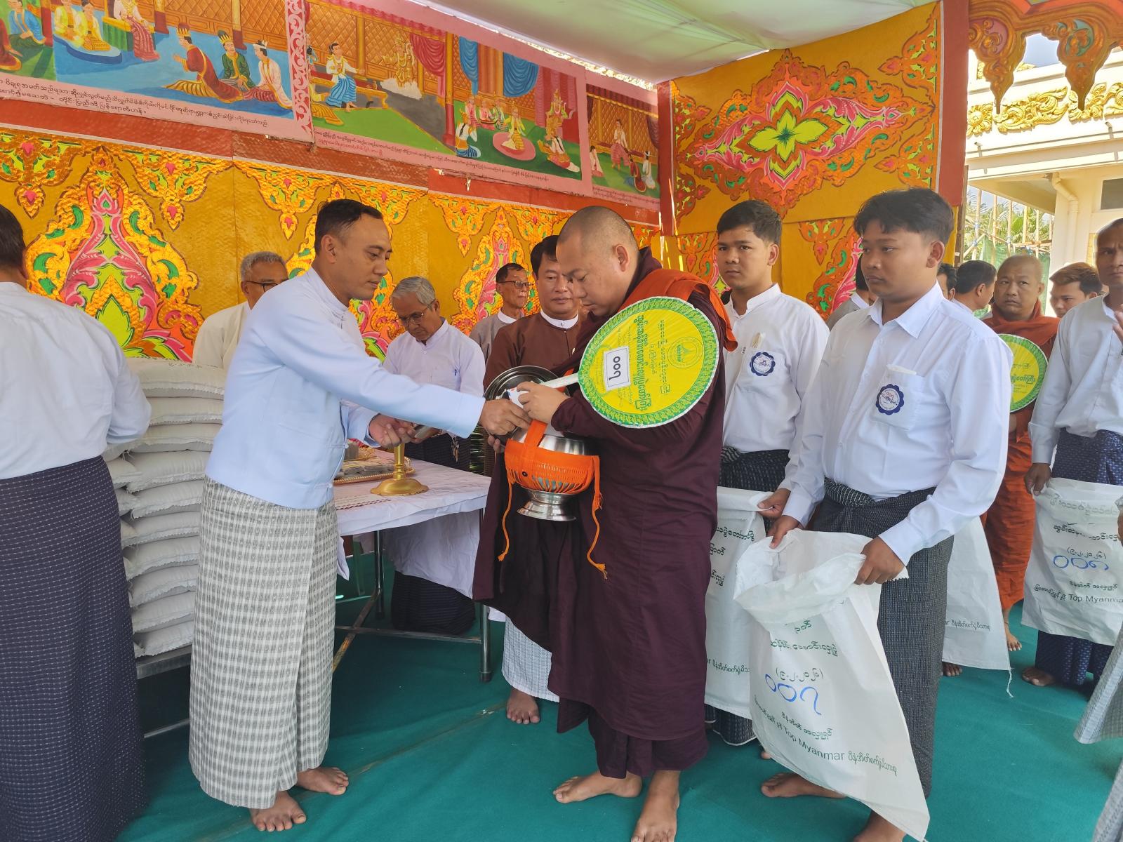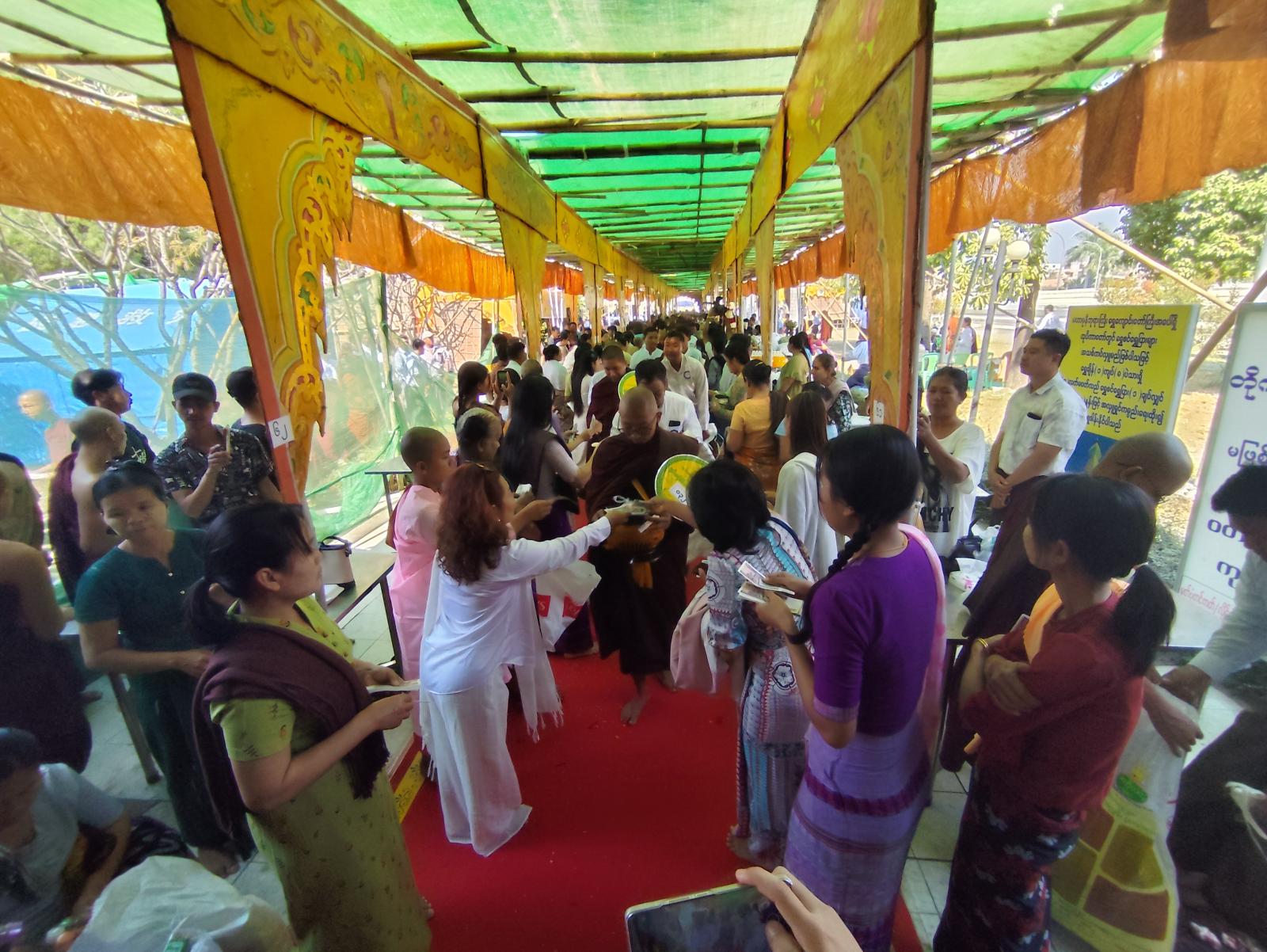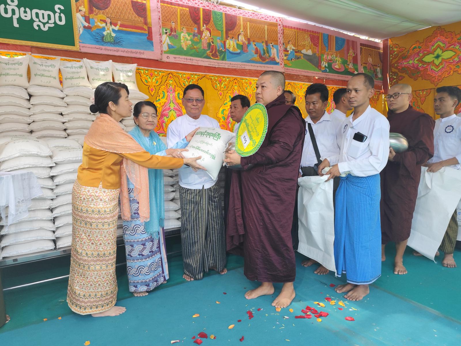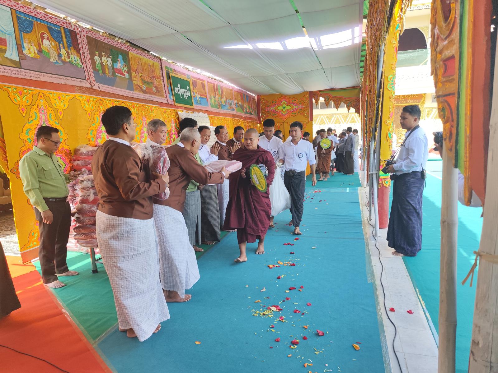 မြတ်စွာဘုရားအမှူးပြုသော သံဃာတော်အရှင်သူမြတ်အပါး ၅၅၀ တို့အား တိုင်းဒေသကြီးအစိုးရအဖွဲ့ လုံခြုံရေးနှင့်နယ်စပ်ရေးရာဝန်ကြီး ဗိုလ်မှူးကြီး နေလင်းစိုး၊ မြို့တော်စည်ပင်သာယာရေးရာဝန်ကြီး ဦးကျော်ဆန်းနှင့်ဇနီး၊ ဥပဒေချုပ် ဦးမြင့်အောင်၊ ဘုရားကြီးဂေါပက ဒုတိယဥက္ကဋ္ဌ ဦးကျော်ဆွေမိုး၊ တိုင်းဒေသကြီးအစိုးရအဖွဲ့ အတွင်းရေးမှူး ဦးဝေဇင်ထွန်း၊ ခရိုင်/မြို့နယ်စီမံခန့်ခွဲရေးနှင့်အုပ်ချုပ်ရေး ကော်မတီဥက္ကဋ္ဌများ၊ အလှူရှင် ပြည်သူများက ဆွမ်းဆန်စိမ်းများ၊ လှူဖွယ်ပစ္စည်းများ၊ ဝတ္ထုငွေများ လောင်းလှူခဲ့ကြောင်း သိရသည်။