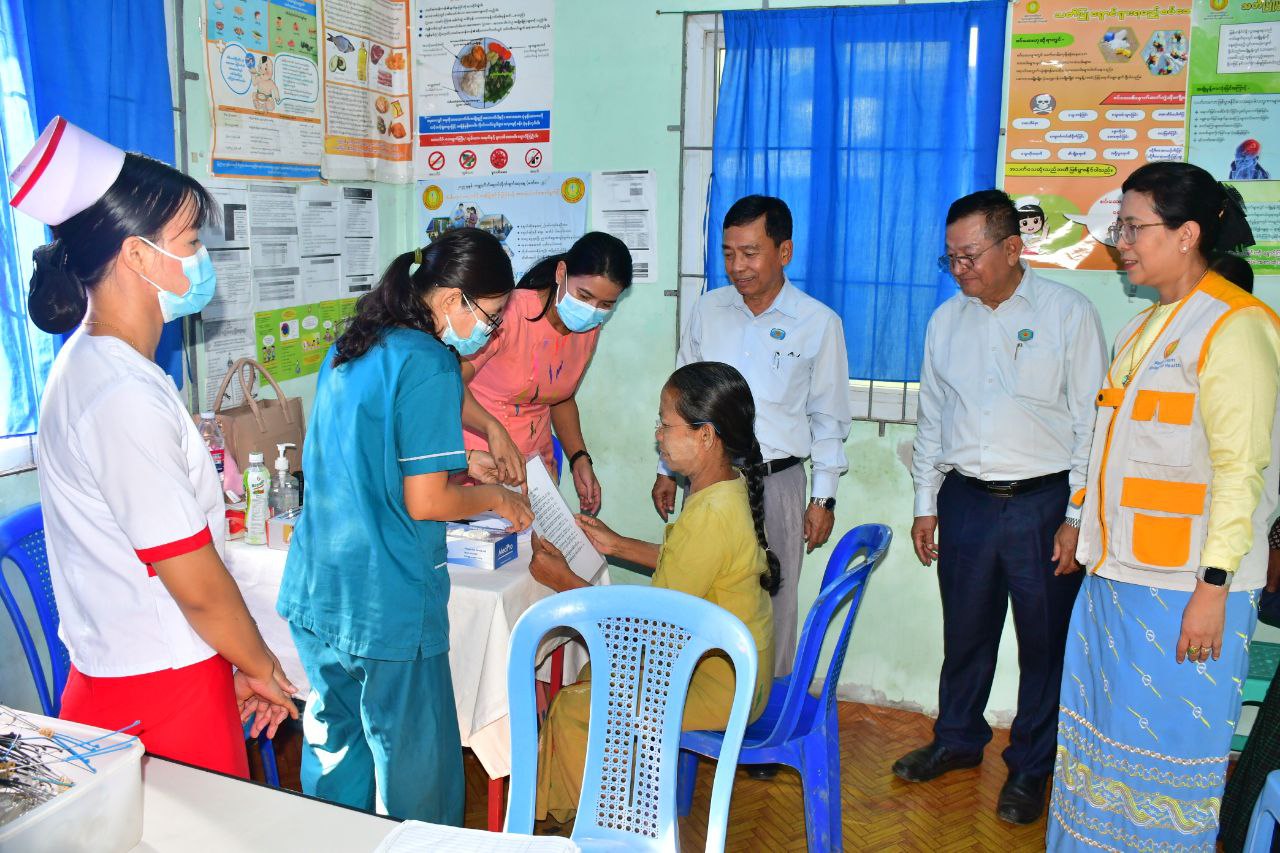 ဦးစွာ နေပြည်တော်ကောင်စီဥက္ကဋ္ဌနှင့်အဖွဲ့သည် ဆေးကုသမှုခံယူရန် ရောက်ရှိနေကြသည့် ဒေသခံပြည်သူများကို ရင်းရင်းနှီးနှီး နှုတ်ဆက်ကာ အထူးကုဆရာဝန်ကြီးများ၊ သူနာပြုများနှင့် ကျန်းမာရေးဝန်ထမ်းများမှ ပြည်သူများအား ကျန်းမာရေးစောင့်ရှောက်မှုပေးနေမှုအခြေအနေများကို လှည့်လည်ကြည့်ရှုအားပေးပြီး ဆေးကုသမှုလာရောက်ခံယူကြသည့် မိဘပြည်သူများအား စားသောက်ဖွယ်ရာများနှင့် နေအိမ်များတွင် ကိုးကွယ်ပူဇော်နိုင်ရန်အတွက် ဘုရားဆင်းတုတော်များကို တစ်ဦးချင်း လက်ဝယ်အရောက် ပေးအပ်လှူဒါန်းခဲ့ကြောင်း သိရသည်။