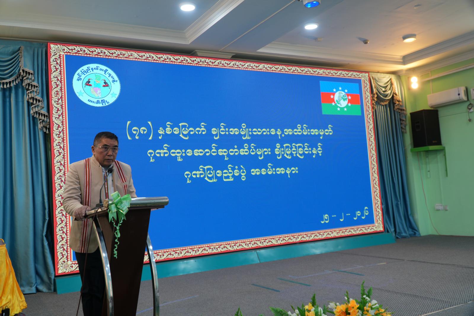(၇၈)နှစ်မြောက် ချင်းအမျိုးသားနေ့အခမ်းအနားအထိမ်းအမှတ် ဂုဏ်ထူးဆောင်ဆုတံဆိပ်များ ချီးမြှင့်ခြင်းနှင့် ဂုဏ်ပြုဧည့်ခံပွဲအခမ်းအနားကို ဖေဖော်ဝါရီလ ၂၇ ရက်နေ့ မွန်းလွဲ ၂ နာရီက ဟားခါးမြို့၊ ချင်းပြည်နယ်အထွေထွေအုပ်ချုပ်ရေးဦးစီးဌာန အစည်းအဝေးခန်းမ၌ ကျင်းပပြုလုပ်ရာ ချင်းပြည်နယ်ဝန်ကြီးချုပ် ဒေါက်တာဝုန်ဆွန်းထန်နှင့် ဇနီး ၊ ပြည်နယ်တရားလွှတ်တော်တရားသူကြီး ချုပ်၊ ပြည်နယ်ဝန်ကြီးများ၊ ပြည်နယ်ဥပဒေချုပ်၊ ပြည်နယ်အစိုးရအဖွဲ့အတွင်းရေးမှူးနှင့် ၎င်းတို့၏ ဇနီးများ၊ ပြည်နယ်အဆင့်ဌာနဆိုင်ရာတာဝန်ရှိသူများနှင့် ဆုရကျောင်းသား ၊ ကျောင်းသူများ တက်ရောက် ကြသည်။
