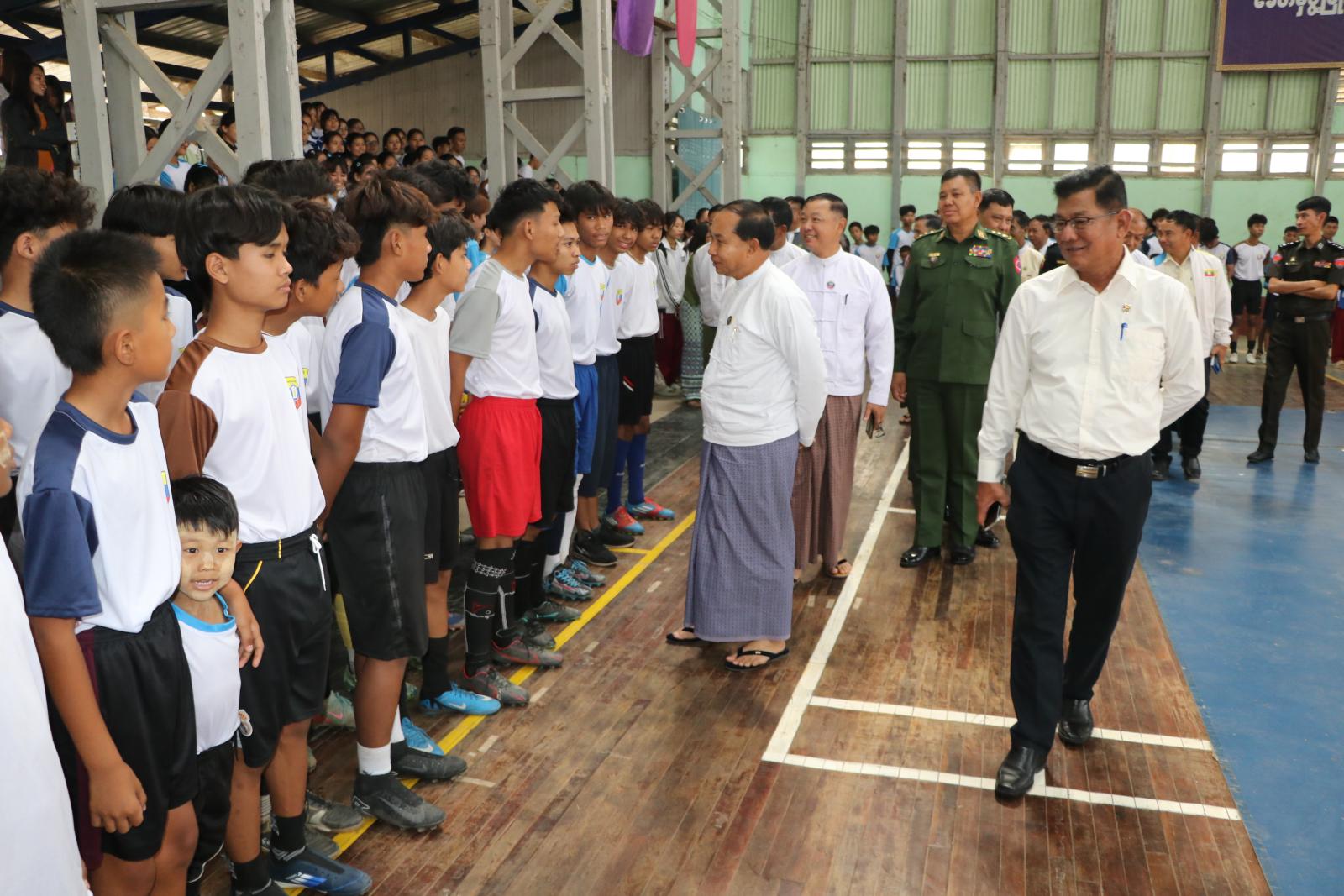 ယင်းနောက် တိုင်းဒေသကြီးဝန်ကြီးချုပ်နှင့် ဖွင့်ပွဲအခမ်းအနားသို့ တက်ရောက်လာသူများမှ သင်တန်းသား၊သင်တန်းသူများ၏ ဘောလုံး၊ ကရာတေး၊ Fitness Dance သရုပ်ပြ သမှုများအား ကြည့်ရှုအားပေးခဲ့ကြပြီး တိုင်းဒေသကြီးအစိုးရအဖွဲ့ဝင်များနှင့် တာဝန်ရှိသူများက သရုပ်ပြသခဲ့ကြသည့် သင်တန်းသား၊ သင်တန်းသူများနှင့် သင်တန်းနည်းပြများအား ဂုဏ်ပြုချီးမြှင့်ငွေများနှင့် အားကစားအထောက်အကူပြု ပစ္စည်းများအား ပေးအပ်ချီးမြှင့်ခဲ့ကြသည်။