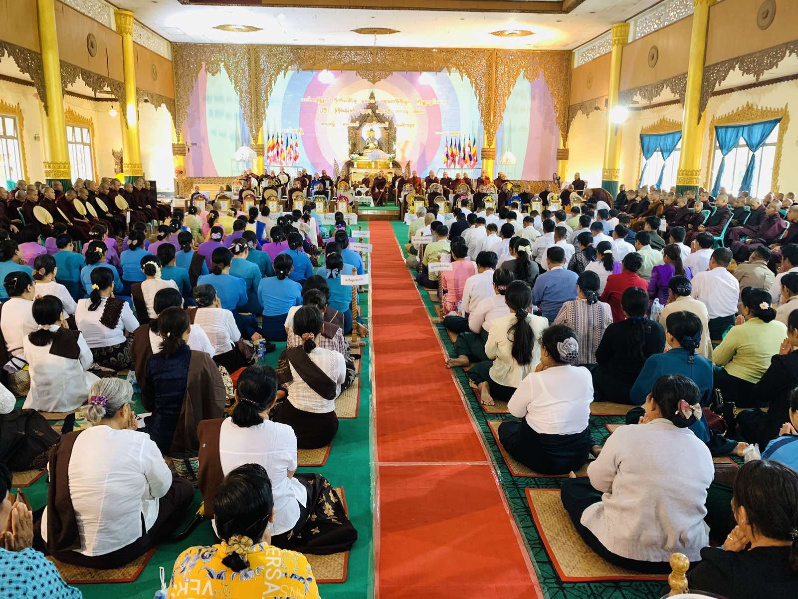 အခမ်းအနားတွင် ကြွရောက်တော်မူလာကြသော ဆရာတော်သံဃာတော်များ၊ ဌာနဆိုင်ရာအကြီးအကဲများ၊ စာအောင်သံဃာတော်များ၊ ဧည့်ပရိတ်သက်များမှ “နမောတဿ” သုံးကြိမ်ရွတ်ဆို၍ အခမ်းအနားဖွင့်လှစ်ခဲ့ကြသည်။ ထို့နောက်မေဃဝတီပရိယတ္တိ စာသင်တိုက်မှ ပဓာနနာယကဆရာတော် ဘဒ္ဒန္တသုမနာဘိဝံသထံမှ ငါးပါးသီလခံယူဆောက်တည်ခြင်းနှင့် မိုးကောင်းပရိယတ္တိစာသင်တိုက် ဦးစီးပဓာန နာယက၊ နိုင်ငံတော်ဩဝါဒစရိယ၊ တိပိဋကဩဝါဒါစရိယအဖွဲ့ဥက္ကဋ္ဌ၊ အဘိဓဇမဟာရဋ္ဌဂုရု၊ အဘိဓဇအဂ္ဂမဟာသဒ္ဓမ္မဇောတိက ကျေးဇူးတော်ရှင် သက်တော်ရှည်ဆရာတော်ကြီး ဘဒ္ဒန္တ သုဓမ္မာစာရာဘိဝံသက ဩဝါဒကထာ ချီးမြှင့်ခြင်းတို့ဆောင်ရွက်ခဲ့ကြသည်။ ထို့နောက် ကြွရောက်တော် မူလာကြသော ပင့်သံဃာဆရာတော်ကြီးများအား ခရိုင်စီမံခန့်ခွဲရေးနှင့်အုပ်ချုပ်ရေးကော်မတီ ဥက္ကဋ္ဌ ဦးလှိုင်ထွန်းနှင့်တာဝန်ရှိသူများမှ လှူဖွယ်ဝတ္ထုပစ္စည်းများ ဆက်ကပ်လှူဒါန်းခြင်းနှင့် ခရိုင်ဥက္ကဋ္ဌ ဦးလှိုင်ထွန်းက သာသနာရေးဆိုင်များ လျှောက်ထားခြင်းတို့ဆောင်ရွက်ခဲ့သည်။ ဆက်လက်၍ မြို့နယ်သံဃမဟာနာယကဥက္ကဋ္ဌ ဆရာတော် ဘဒ္ဒန္တ စန္ဒသီရိဘိဝံသထံမှ အနုမောဒနာတရားနာကြား၍ လှူဒါန်းမှုအစုစုတို့အတွက် ရေစက်သွန်းချအမျှပေးဝေခြင်း၊ ဌာနဆိုင်ရာတာဝန်ရှိသူများနှင့် အလှူရှင် များမှ ဂုဏ်ထူးအောင်အရှင်မြတ် (၁၅)ပါးအား အောင်လက်မှတ်နှင့် စာအောင်ဆုများ ဆက်ကပ် လှူဒါန်းခြင်း၊ ပထမကြီးတန်း၊ ပထမလတ်တန်း၊ ပထမငယ်တန်း၊ မူလတန်း၊ မူကြိုတန်း၊ အာဂုံပြန်တန်းအောင်မြင်တော်မူကြသော စာအောင်အရှင်မြတ်များအား အောင်လက်မှတ်နှင့် စာအောင်ဆုများ အသီးသီး ဆက်ကပ်လှူဒါန်းခြင်းတို့ဆောင်ရွက်ခဲ့ပြီး အခမ်းအနားကို “ဗုဒ္ဓသာသနံစိရံတိဌတု” သုံးကြိမ် ရွတ်ဆို၍ အောင်မြင်စွာ ပိတ်သိမ်းခဲ့သည်။