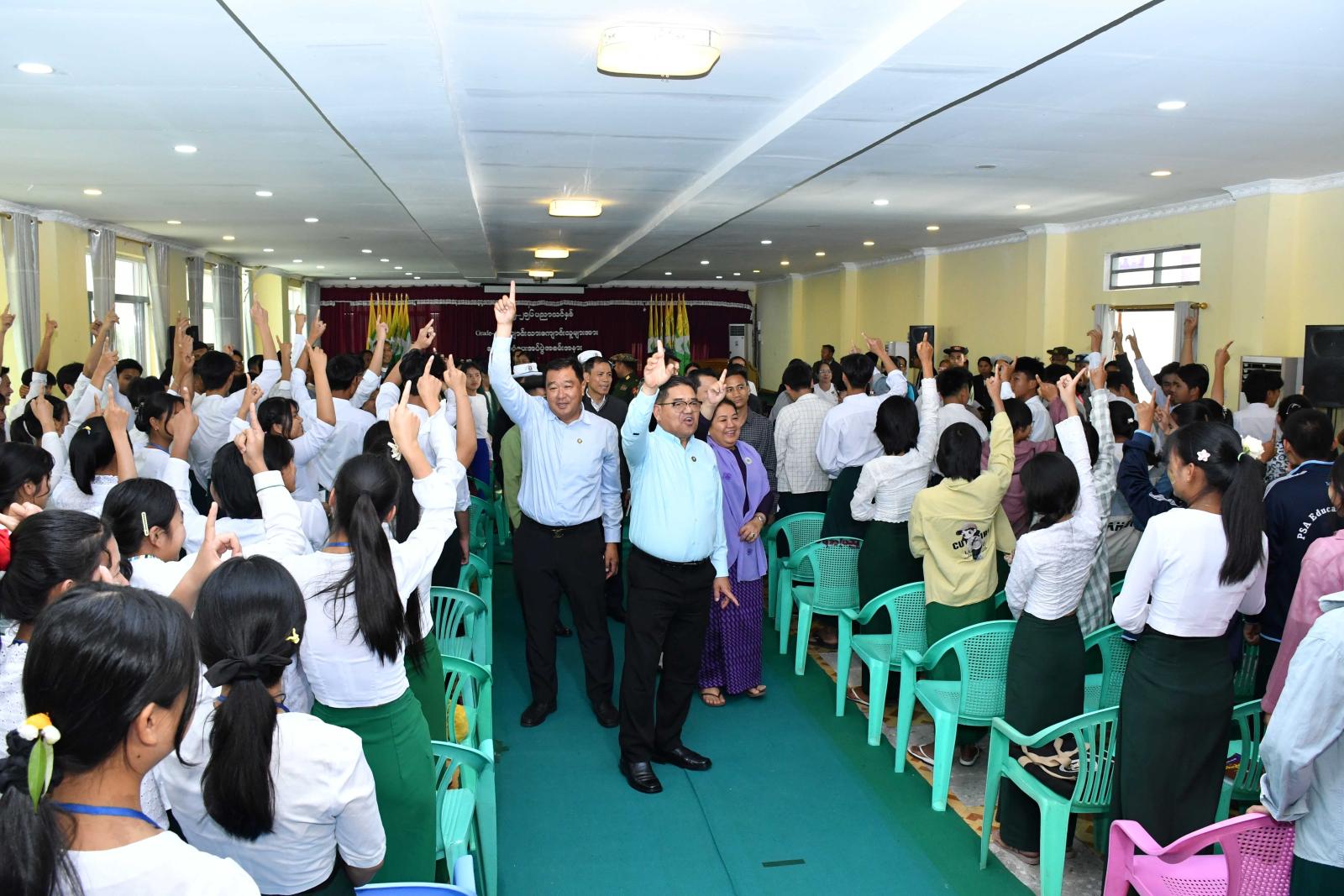ယင်းနောက် မွန်းလွဲပိုင်းတွင် ပြည်နယ်ဝန်ကြီးချုပ်နှင့်အဖွဲ့ဝင်များသည် မြို့နယ်စုပေါင်းရုံး အစည်းအဝေးခန်းမ၌ ၂၀၂၆ ခုနှစ် တက္ကသိုလ်ဝင်စားမေးပွဲ အောင်မြင်စွာကျင်းပနိုင်ရေးနှင့် အောင်ချက်မြင့်မားရေးအတွက် သင်ကြားရေး ဆရာ၊ဆရာမများ၊ Grade-12 ကျောင်းသား/ကျောင်းသူများနှင့် တွေ့ဆုံထောက်ပံ့ပွဲ အခမ်းအနားသို့ တက်ရောက်သည်။
