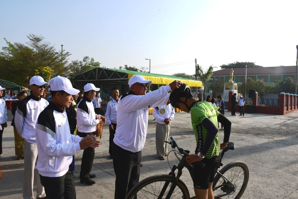 ထို့နောက် (၃၀)ကီလိုမီတာကို စက်ဘီးစီးနင်းခြင်းအတွက် ပြည်နယ်စီးပွားရေးရာဝန်ကြီး ဦးခွန်သိန်းမောင်ကလည်းကောင်း၊ (၁၅)ကီလိုမီတာ စက်ဘီးစီးနင်းခြင်းအတွက် ပြည်နယ်တိုင်းရင်းသားရေးရာဝန်ကြီး ဦးအောင်ကြည်ဝင်းကလည်းကောင်း အသီးသီးသေနတ်ပစ်ဖောက်၍ တာလွှတ်ပေခဲ့ပြီး ပါဝင်စီးနင်းသူများကို ပြည်နယ်ဝန်ကြီးများနှင့် ဧည့်သည်တော်များက ရင်းရင်းနှီးနှီး နှုတ်ဆက်အားပေးခဲ့ကြသည်။