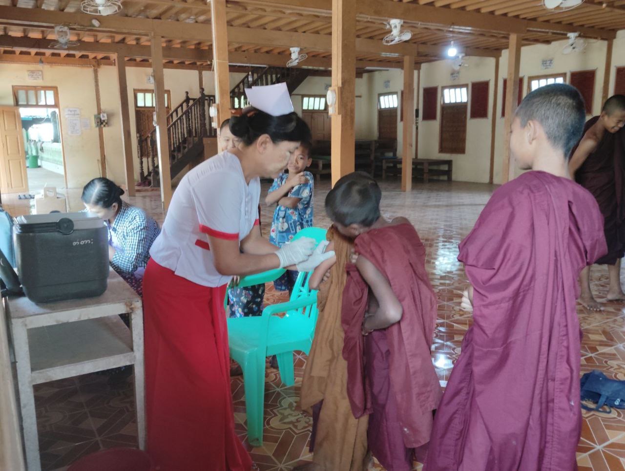 ရန်ကုန်တိုင်းဒေသကြီးအတွင်းရှိ မြို့နယ်များမှ မိဘမဲ့ကျောင်းများ၊ IDP camp များ၊ ဘုန်းတော်ကြီးကျောင်းများ၊ သီလရှင်ကျောင်းများရှိ လူစုလူဝေးဖြင့် နေထိုင်သည့်နေရာများတွင် အသက် (၉) လမှ (၁၅)နှစ်ကလေးများအား ဝက်သက်၊ ဂျိုက်သိုးရောဂါ ကာကွယ်ဆေးထိုးနှံပေးခြင်းလုပ်ငန်းများကို ဆောင်ရွက်ပေးလျက်ရှိရာ မတ်လ (၁) ရက်နေ့ နံနက်ပိုင်းကစတင်၍ တံတားမြို့ ပြည်သူ့ကျန်းမာရေးဦးစီးဌာနမှ ဝက်သက်၊ ဂျိုက်သိုးရောဂါ ကာကွယ်ဆေးထိုးနှံပေးခဲ့ကြောင်း သိရသည်။
