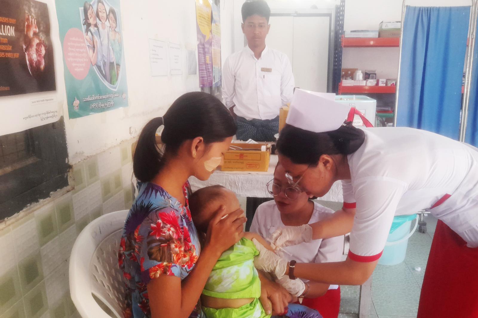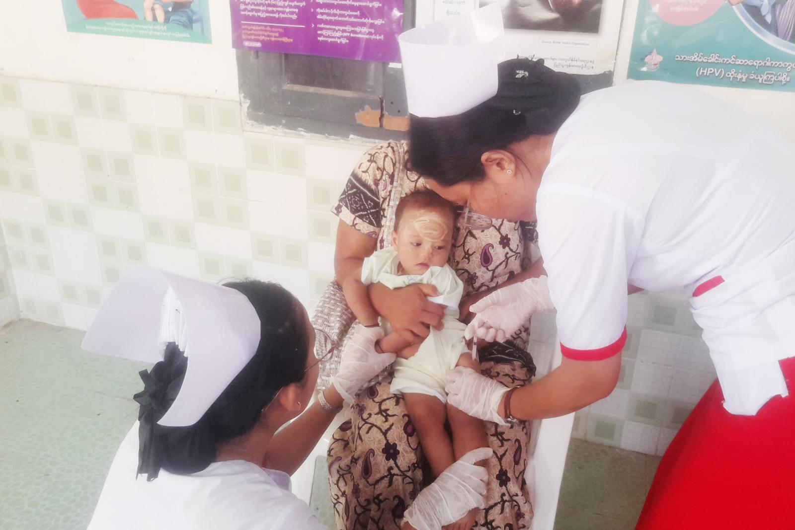 ကာကွယ်ဆေးလာရောက်ထိုးနှံကြသည့် ကိုယ်ဝန်ဆောင်မိခင်များနှင့်ကလးမိခင်များကိုပြည်သူ့ကျန်းမာရေးဦးစီးဌာန မြို့နယ်မိခင်နှင့်ကလေးကျန်းမာရေးဌာနမှ တာဝန်ရှိသူများက ကျန်းမာရေးဆိုင်ရာ သတိပြုနေထိုင်ရမည့် ဆောင်ရန်ရှောင်ရန်များနှင့် ပတ်သက်သည်များကို အသိပညာပေးပြောကြားပြီး ကိုယ်ဝန်ဆောင်မိခင်များအား မေးခိုင်ကာကွယ်ဆေးထိုးနှံပေးခြင်း၊ မွေးကင်းစမှအသက် (၂)နှစ်အထိ ကလေးများအား BCG ဦးနှောက်အမြှေးရောင်တီဘီ၊ လူးစေ့တီဘီရောဂါကာကွယ်ဆေး၊ OPV ပိုလီယိုရောဂါကာကွယ်ဆေး၊ ပြင်းထန်အဆုတ်ရောင်ကာကွယ်ဆေး၊ ဂျပန်ဦးနှောက်အမြှေးရောင် ရောဂါကာကွယ်ဆေး၊ (ဆုံဆို့နာ၊ ကြက်ညှာချောင်းဆိုး၊ မေးခိုင်ရောဂါ၊ ဦးနှောက်အမြှေးရောင်ရောဂါ၊ အသည်းရောင် အသားဝါ(ဘီ) စသည့်(၅)မျိုးစပ် ကာကွယ်ဆေး၊ ဝက်သက်ဂျိုက်သိုးရောဂါ ကာကွယ်ဆေး၊ ဝမ်းပျက်ဝမ်းလျှောရောဂါ ကာကွယ်ဆေးစသည့် အသက်အရွယ်အလိုက်သတ်မှတ်ထားသည့် ကာကွယ်ဆေးများကို လစဉ်ပုံမှန် ထိုးနှံပေးလျက်ရှိကြောင်း သိရသည်။