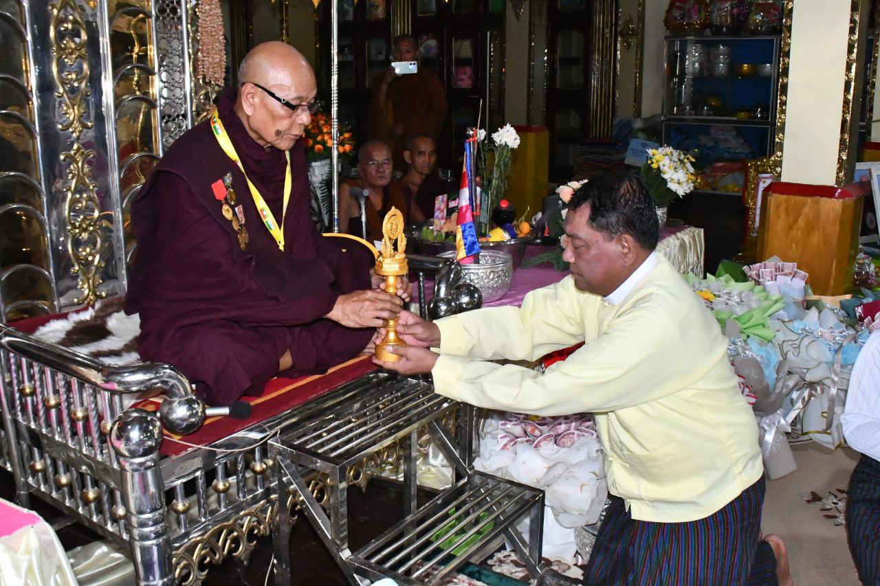 ထို့နောက် ဆရာတော် ဒေါက်တာဘဒ္ဒန္တပုပ္ဖမဟာ ထေရ်မြတ်ဘုရားထံမှ ၅ ပါးသီလ ခံယူဆောက်တည်ခြင်းနှင့် ဆရာတော်သံဃာတော်များမှ ဘ၀တုသဗ္ဗမင်္ဂလံ ၃ ဂါထာဖြင့် မေတ္တာပို့သပေးခဲ့ကြပြီး ပြည်တွင်း/ပြည်ပ (၁၄)ဘွဲ့ရဆရာတော်အား တာဝန်ရှိသူများက ဘွဲ့တံဆိပ်တော်များထပ်ဆင့်ကပ်လှူပူဇော်ခြင်းနှင့် ဆရာတော်၏ ဒါယိကာ/ဒါယိကာမ (၃) ဦးအား ဂုဏ်ထူးဆောင်လက်မှတ်များ ထပ်ဆင့်ပေးအပ်ခဲ့သည်။