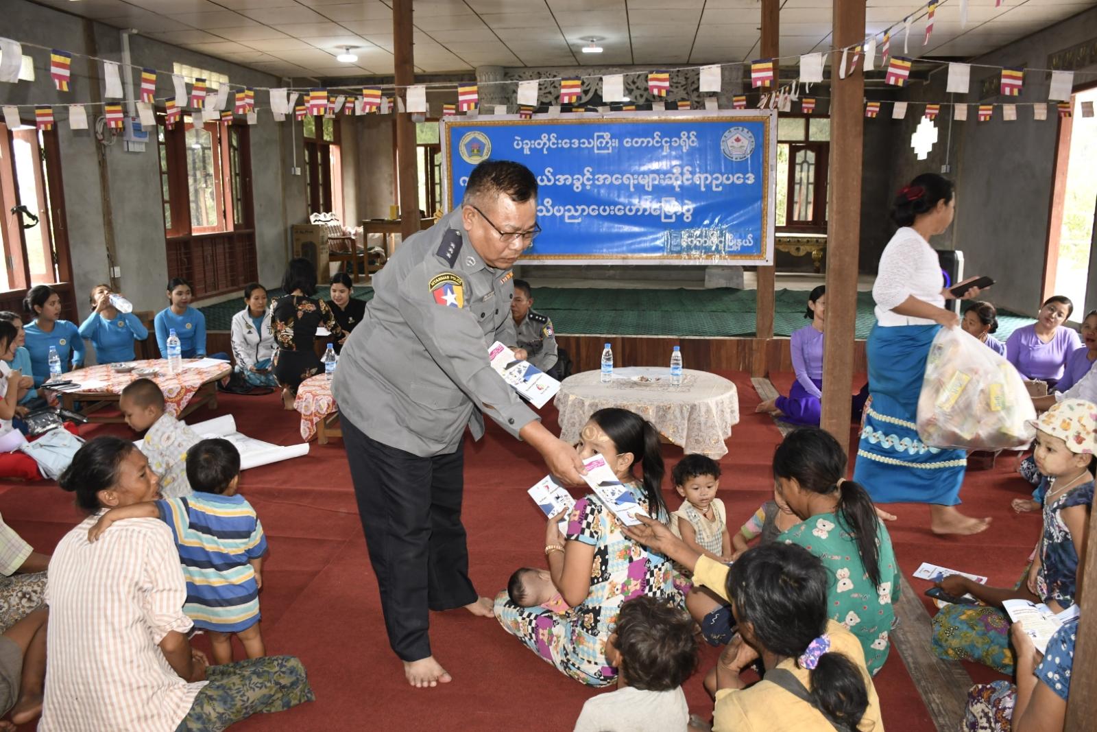 ပဲခူးတိုင်းဒေသကြီး၊ တောင်ငူခရိုင်၊ တောင်ငူမြို့နယ်၊ ကင်းဆိပ်ကျေးရွာအုပ်စု၊ စိန်ပန်းမြိုင်ကျေးရွာ သီရိဓမ္မနန္ဒာဘုန်းကြီးကျောင်း၌ ကလေးသူငယ်အခွင့်အရေးများဆိုင်ရာ ဥပဒေအသိပညာပေးဟောပြောပွဲကို ယမန်နေ့နံနက် (၁၀)နာရီအချိန်က ကျင်းပသည်။