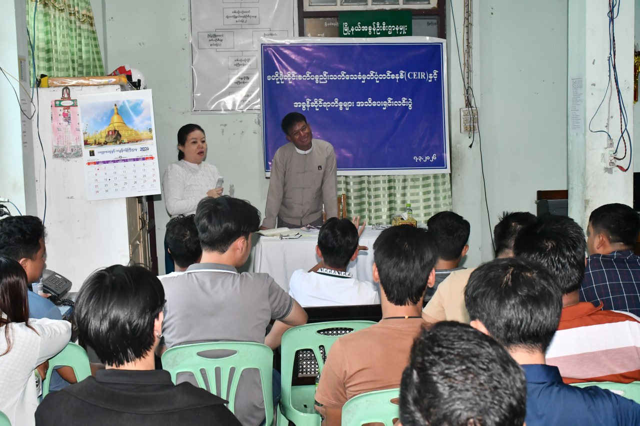 ကော့သောင်းမြို့နယ်အတွင်းရှိ ဟန်းဆက်နှင့်ဆက်စပ်ပစ္စည်းလုပ်ငန်းရှင်များနှင့် မိုဘိုင်းလက်ကိုင်ဖုန်းသုံးစွဲသူပြည်သူများအား ဗဟိုမိုဘိုင်းစက်ပစ္စည်းသက်သေခံ မှတ်ပုံတင်စနစ် (CEIR) အကြောင်း သိကောင်းစရာနှင့် အခွန်ဆိုင်ရာအသိပညာပေးရှင်းလင်းပွဲ အခမ်းအနားကို ယနေ့နံနက်ပိုင်းက ကော့သောင်းမြို့နယ် အခွန်ဦးစီးဌာနမှူးရုံး၌ ကျင်းပခဲ့သည်။