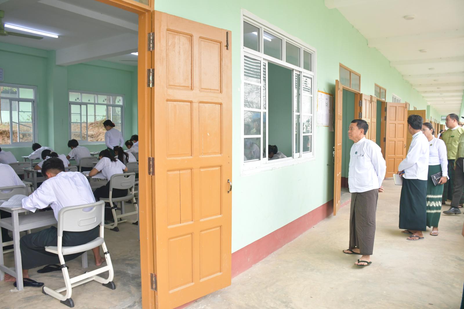 ထို့နောက် နေပြည်တော်ကောင်စီဥက္ကဋ္ဌ ဦးသန်းထွန်းဦးသည် လယ်ဝေးမြို့နယ်၊ အမှတ်(၂)အခြေခံပညာအထက်တန်းကျောင်း၊ ပျံချီကျေးရွာ၊ အခြေခံပညာနှင့် စက်မှု၊ စိုက်ပျိုး၊ မွေးမြူရေးအထက်တန်းကျောင်းနှင့် ပျဉ်းမနားမြို့နယ်၊ အမှတ်(၁) အခြေခံပညာနှင့် စက်မှု၊ စိုက်ပျိုး၊ မွေးမြူရေးအထက်တန်းကျောင်းစာစစ်ဌာနများသို့ သွားရောက်၍ တက္ကသိုလ်ဝင်စာမေးပွဲ မြန်မာစာဘာသာရပ်ကို ကျောင်းသား၊ ကျောင်းသူများ အေးချမ်းစွာဖြေဆိုနေမှုကို လှည့်လည်ကြည့်ရှုအားပေးပြီး လိုအပ်သည်များကို ပေါင်းစပ်ဆောင်ရွက်ပေးခဲ့သည်။