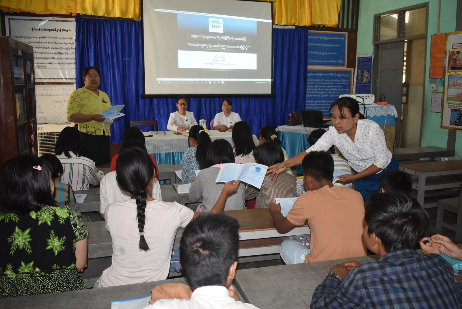 ရှေးဦးစွာ လူငယ်ရေးရာအသိပညာပေးဟောပြောပွဲတွင် မြို့နယ်ပြန်ကြားရေးနှင့်ပြည်သူ့ဆက်ဆံရေးဦးစီးဌာန ဦးစီးအရာရှိ ဒေါ်သိမ့်ဝါက လူငယ်နှင့်စာရိတ္တ ခေါင်းစဉ်ဖြင့်လည်းကောင်း၊ မြို့နယ်စားသုံးသူရေးရာဦးစီးဌာန၊ မြို့နယ်တာဝန်ခံ ဒေါ်မြတ်မြတ်မိုးကကမ္ဘာ့စားသုံးသူအခွင့်အရေးများနေ့ကို ကြိုဆိုသောအားဖြင့် စားသုံးသူအခွင့်အရေးနှင့်တာဝန်များအကြောင်းကိုလည်းကောင်း၊ မြို့နယ်ပြန်ကြားရေးနှင့်ပြည်သူ့ဆက်ဆံရေးဦးစီးဌာန ဒုတိယဦးစီးမှူးဒေါ်ခင်ချိုချိုဝင်းက စာဖတ်ခြင်း၏အကျိုးကျေးဇူးများအကြောင်းကိုလည်းကောင်း၊ မြို့နယ်ဘေးအန္တရာယ်ဆိုင်ရာစီမံခန့်ခွဲမှုဦးစီးဌာန ဦးဝေဖြိုးနိုင်က သဘာဝဘေးအန္တရာယ်ဆိုင်ရာသိကောင်းစရာများကိုလည်းကောင်း အသီးသီးဟောပြောခဲ့ကြသည်။