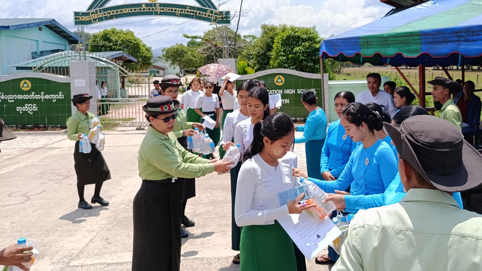 အဆိုပါ တက္ကသိုလ်ဝင်စာမေးပွဲ သင်္ချာဘာသာဖြေဆိုပြီးသည့် ကျောင်းသား/ကျောင်းသူများကို ဘုတ်ပြင်းမြို့နယ်စီမံခန့်ခွဲရေးနှင့်အုပ်ချုပ်ရေးကော်မတီဥက္ကဋ္ဌ ဦးညီညီနှင့်အဖွဲ့ဝင်များ၊ မြို့နယ်အဆင့်ဌာနဆိုင်ရာများ၊ လူမှုရေးအသင်းအဖွဲ့များ၊ စေတနာရှင်များကစုပေါင်း၍ ကျောင်းသား/ကျောင်းသူများကို အားဖြည့်အချိုရေ၊ အာဟာရပြည့်မုန့်နှင့် ရေသန့်များကို ဖြန့်ဝေပေးခဲ့ကြောင်း သိရသည်။