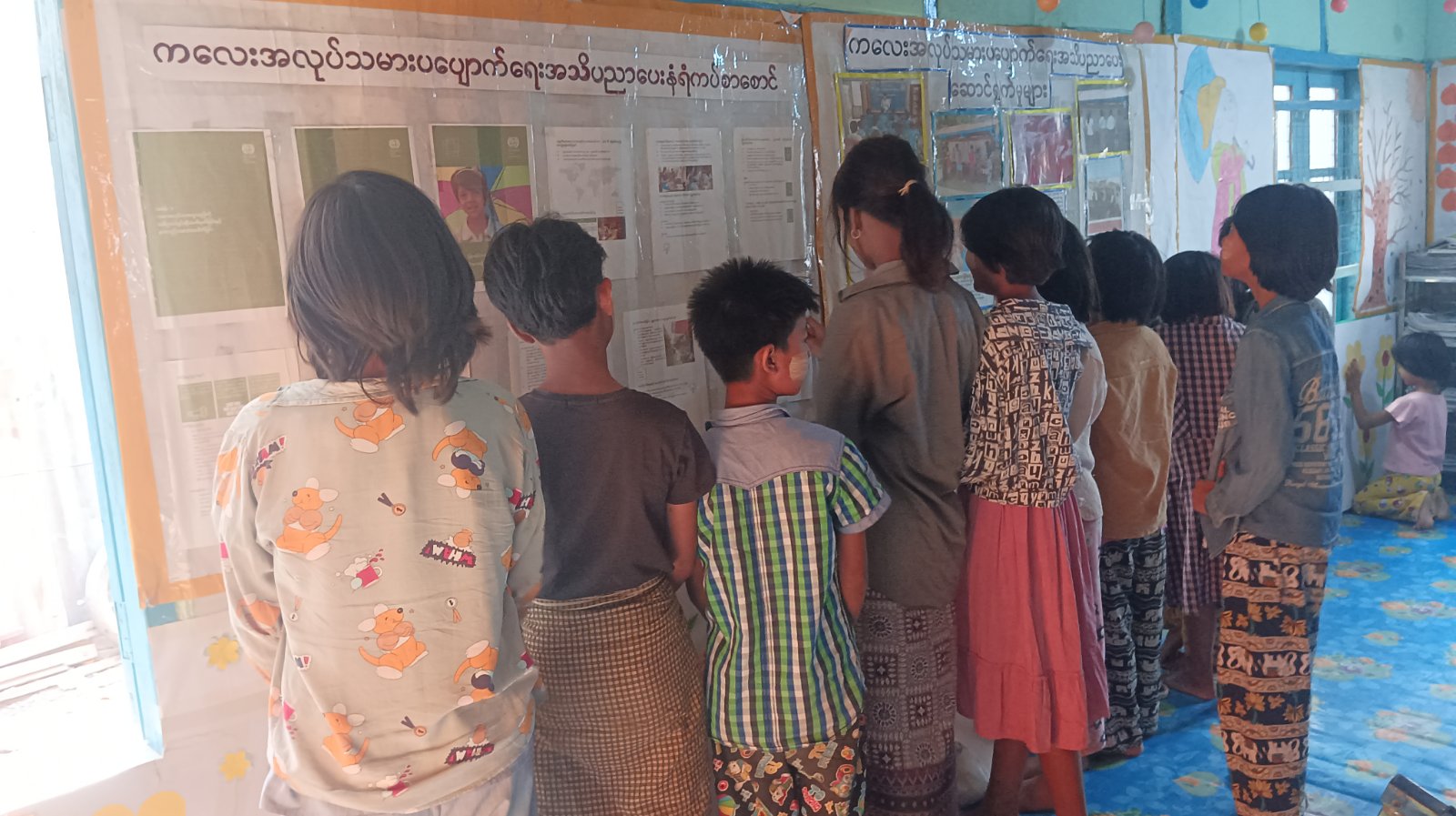 ပန်းချီပြိုင်ပွဲအား ဆက်လက်ကျင်းပရာ အကြီးတန်းအဆင့် စိတ်ကြိုက်ပန်းချီပြိုင်ပွဲတွင် ပြိုင်ပွဲဝင် ကျောင်းသား၊ ကျောင်းသူ ၂၅ ဦးနှင့် အငယ်တန်းအဆင့် ပန်းချီပြိုင်ပွဲတွင် ပြိုင်ပွဲဝင် ကျောင်းသား၊ကျောင်းသူ ၂၀ ဦးတို့ ဝင်ရောက်ယှဥ်ပြိုင်ခဲ့ကြသည်။ ထို့နောက် ပြည်သူ့စာကြည့်တိုက် ကလေးစာဖတ်ခန်း၌ ခင်းကျင်းပြသထားသော ကလေးအလုပ်သမားပပျောက်ရေး အသိပညာပေးနံရံကပ်စာစောင်များကို ကျောင်းသား၊ကျောင်းသူများက စိတ်ပါဝင်စားစွာလေ့လာကြည့်ရှုခဲ့ကြောင်း သိရသည်။