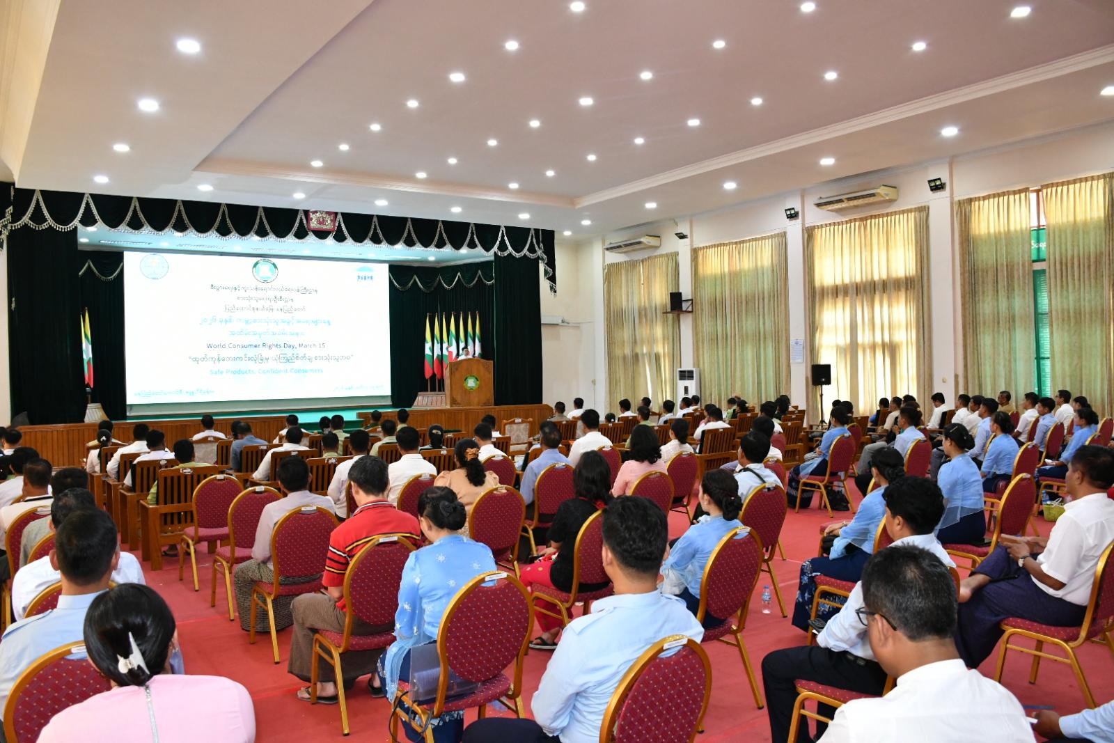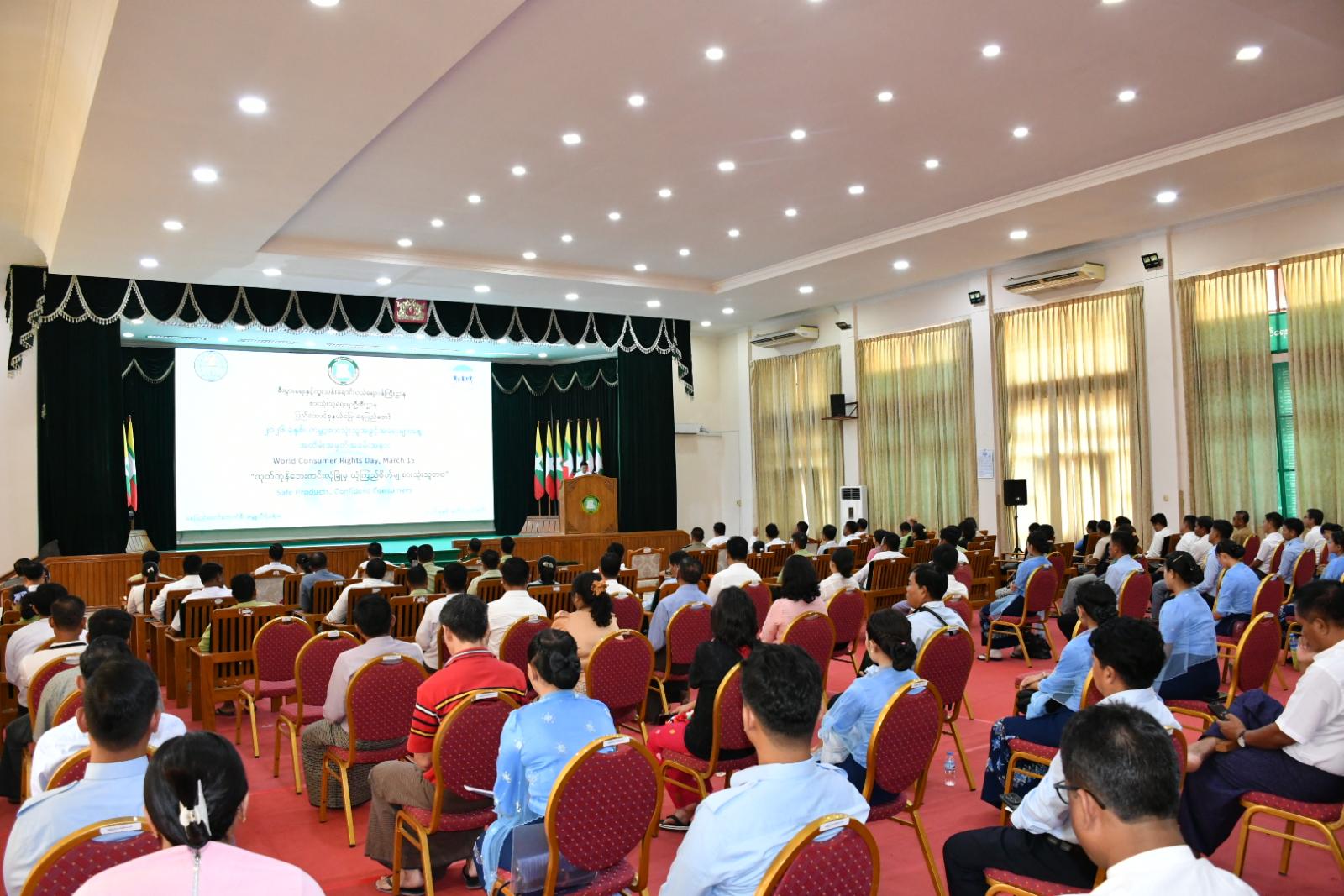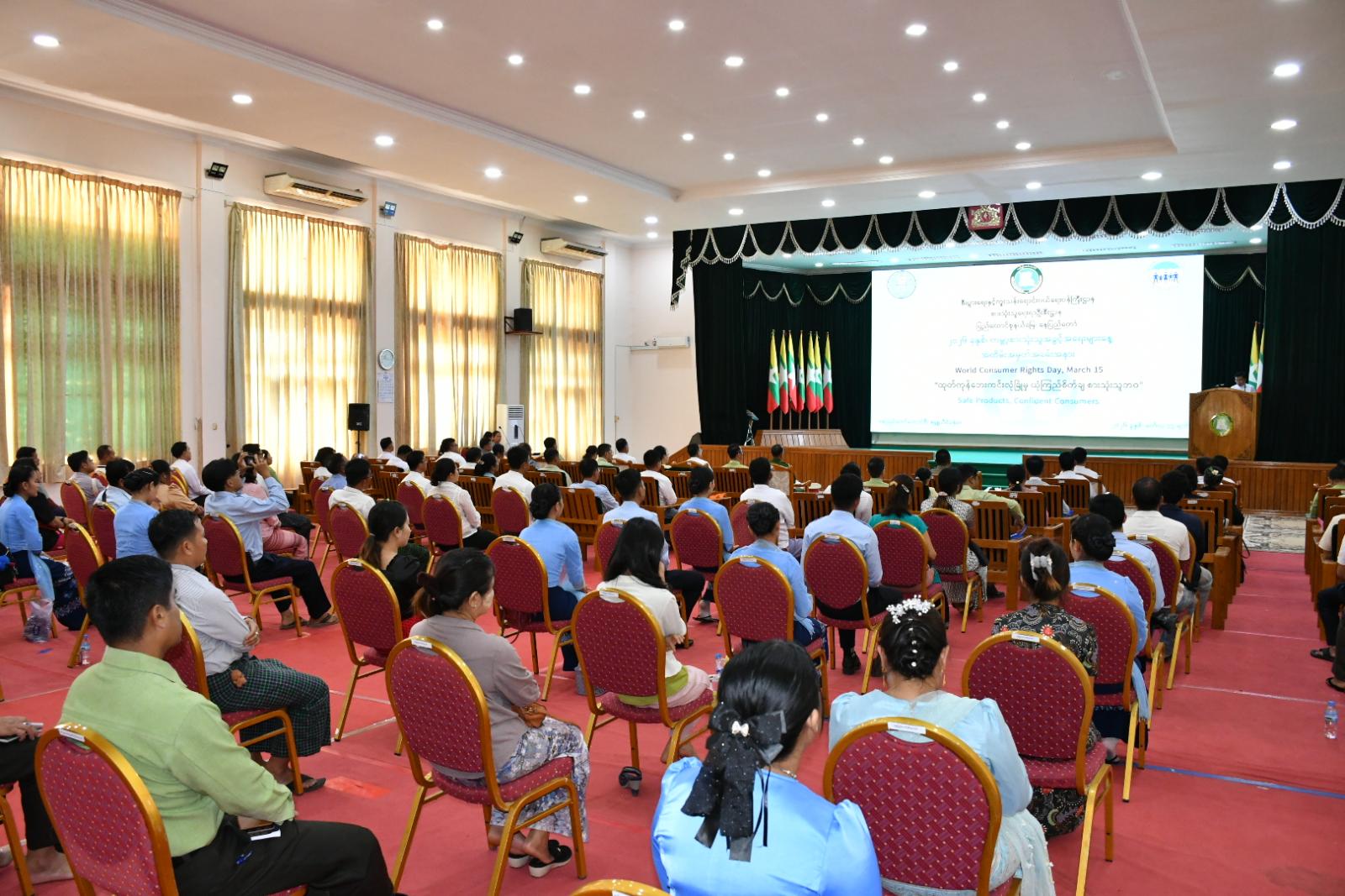 ဦးစွာ နေပြည်ဝော်ကောင်စီဥက္ကဋ္ဌ ဦးသန်းထွန်းဦးက ယနေ့ကျင်းပပြုလုပ်တဲ့ ကမ္ဘာ့စားသုံးသူအခွင့်အရေးများနေ့ အခမ်းအနားကို ကမ္ဘာ့နိုင်ငံအသီးသီးမှာ အလေးထားကျင်းပလျက်ရှိကြပြီး မတ်လ (၁၅)ရက်နေ့ကို ကမ္ဘာ့စားသုံးသူအခွင့်အရေးများနေ့အဖြစ် သတ်မှတ်ထားပါကြောင်း၊ ယခုနှစ် ကမ္ဘာ့စားသုံးသူအခွင့်အရေးများနေ့၏ ဆောင်ပုဒ်ကတော့ “ထုတ်ကုန်ဘေးကင်းလုံခြုံမှ ယုံကြည်စိတ်ချစားသုံးသူဘဝ” ဆိုတဲ့ဆောင်ပုဒ်ကို ကမ္ဘာ့စားသုံးသူသမဂ္ဂမှ ရွေးချယ်သတ်မှတ်ခြင်းဖြစ်ပါကြောင်း၊ မြန်မာနိုင်ငံသည်လည်း အခြားနိုင်ငံများနည်းတူ စားသုံးသူကာကွယ်ရေးများကို ဆောင်ရွက်နိုင်ဖို့ စားသုံးသူရေးရာဦးစီးဌာနကို ဖွဲ့စည်းတာဝန်ပေးအပ်ထားပြီး ကမ္ဘာ့စားသုံးသူအခွင့်အရေးများနေ့ အထိမ်းအမှတ်အခမ်းအနားများနဲ့ လှုပ်ရှားဆောင်ရွက်မှုများကို ယခုလို နှစ်စဉ်ကျင်းပလျက်ရှိပါကြောင်း၊ မြန်မာနိုင်ငံအနေဖြင့် အာဆီယံစားသုံးသူကာကွယ်ရေးကော်မတီမှာလည်း အဖွဲ့ဝင်အဖြစ်ပါဝင်ထားပြီး အသိပညာပေးခြင်း၊ သတင်းဖြန့်ဝေခြင်း၊ ထုတ်ကုန်လုံခြုံစိတ်ချရမှုရှိစေခြင်းနှင့် တိုင်ကြားမှုဖြေရှင်းခြင်း လုပ်ငန်းစဉ်များကို လိုက်ပါပူးပေါင်းဆောင်ရွက်လျက်ရှိပါကြောင်း၊ စားသုံးသူပြည်သူများအနေဖြင့် စားသုံးသူအခွင့်အရေးများကို သိရှိမှသာ မိမိတို့ရရှိမယ့် အခွင့်အရေးများကို သိရှိတောင်းဆိုနိုင်မှာဖြစ်ပါကြောင်း၊ ဒါကြောင့် စားသုံးသူရေးရာဦးစီးဌာနအနေနဲ့ စားသုံးသူအသိပညာပေး ဟောပြောပွဲများ ဆောင်ရွက်ခြင်း၊ အသိပညာပေးလက်ကမ်းစာစောင် ဖြန့်ဝေခြင်းတို့ကို ဆောင်ရွက်လျက်ရှိတာကို တွေ့ရမှာဖြစ်ပါကြောင်း၊ ကုန်စည်သို့မဟုတ် ဝန်ဆောင်မှုကို ဝယ်ယူအသုံးပြုခြင်းကြောင့် ဖြစ်ပေါ်လာတဲ့ စားသုံးသူနစ်နာဆုံးရှုံးမှုများကို ဖြေရှင်းဆောင်ရွက်ပေးလျက်ရှိကြောင်း အသိပညာပေးမှုများမှ တစ်ဆင့်ဖြစ်စေ၊ ဖြေရှင်းပေးလိုက်လို့ အငြင်းပွားမှုပြေလည်သွားသည့်အခါ တိုင်ကြားသူများရဲ့ စိတ်တွင်ကျေနပ်မှုရရှိပြီး နီးစပ်ရာအသိုင်းအဝိုင်းများတွင် ပြောပြခြင်းကြောင့် စားသုံးသူကာကွယ်ရေးလုပ်ငန်းများ ဆောင်ရွက်နေမှုကို ပိုမိုသိရှိလာတာ တွေ့ရပါကြောင်း၊ ကုန်စည်နှင့်ဝန်ဆောင်မှုများကို သုံးစွဲတဲ့အခါမှာ စားသုံးသူများနစ်နာ ဆုံးရှုံးမှုများဖြစ်ပေါ်ပါက တိုင်ကြားမှုများကို လက်ခံဖြေရှင်းပေးနိုင်ဖို့အတွက် ဆောင်ရွက်ရမယ့် တာဝန်ရှိသူများအနေနဲ့ စားသုံးသူကာကွယ်ရေးဥပဒေ၊ နည်းဥပဒေများကို သိရှိနားလည် ကျွမ်းကျင်ရန်နှင့် ဗဟုသုတများရှိနေဖို့လည်း လိုအပ်ပါကြောင်း၊ တိုင်ကြားခြင်းနှင့် စေ့စပ်ညှိနှိုင်းဖြေရှင်းဆောင်ရွက်ခြင်းကို စားသုံးသူကာကွယ်ရေးဥပဒေမှာ အခန်းတစ်ခန်း