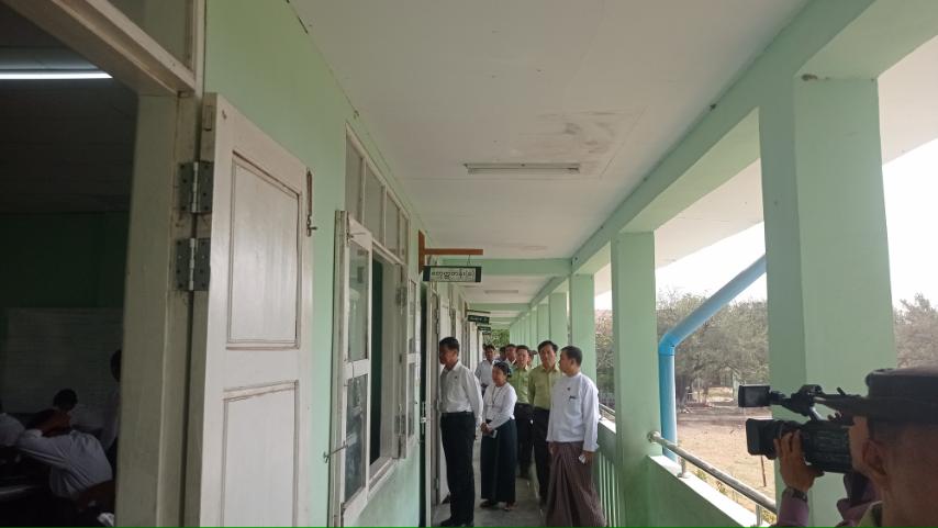 ရှေးဦးစွာ တိုင်းဒေသကြီး ဝန်ကြီးချုပ် ဦးမျိုးအောင်၊ လုံခြုံရေးနှင့်နယ်စပ်ရေးရာဝန်ကြီး ဗိုလ်မှူးကြီး နေလင်းစိုး၊ စီးပွားရေးရာဝန်ကြီး ဦးသိန်းဌေး၊ သံယံဇာတရေးရာဝန်ကြီး ဦးရွှေဇင်၊ လမ်းပန်းဆက်သွယ်ရေးဝန်ကြီး ဦးအောင်ဇော်ဦးနှင့် တာဝန်ရှိသူများ မြို့နယ်အတွင်းရှိ စာစစ်ဌာနသုံးခုဖြစ်သည့် အ.ထ.က (စဉ့်ကိုင်) စာစစ်ဌာန၊ အထက(ပလိပ်) စာစစ်ဌာနနှင့် အ.ထ.က(ဘယ်လင်း) စာစစ်ဌာနများသို့ ရောက်ရှိစဉ် မြို့နယ်စီမံခန့်ခွဲရေးနှင့် အုပ်ချုပ်ရေးကော်မတီ ဥက္ကဋ္ဌ မြို့နယ်အုပ်ချုပ်ရေးမှူး ဦးဗိုလ်အောင်မောင်မောင်နှင့် အဖွဲ့ဝင်များ၊ မြို့နယ်ပညာရေးမှူး ဒေါ်မြင့်မြင့်ဦးနှင့် ကျောင်းအုပ်ကြီးများ၊ မြို့နယ်အဆင့် ဌာနဆိုင်ရာ အကြီးအကဲများက စာမေးပွဲ စည်းမျဉ်း/စည်းကမ်းများနှင့်အညီ စနစ်တကျ ဆောင်ရွက်ထားရှိမှု အခြေအနေများ၊ ဝင်ရောက်ဖြေဆိုသည့် ကျောင်းသား/ကျောင်းသူဦးရေ၊ ဌာနဆိုင်ရာများမှ လုံခြုံရေးရာ ကိစ္စရပ်များ ဆောင်ရွက်ပေးမှုအခြေအနေ၊ စာရေးကိရိယာများ အခမဲ့ အသုံးပြုနိုင်ရန် စီစဉ်ဆောင်ရွက်ထားရှိမှုများ၊ ကျန်းမာရေးဆိုင်ရာ ကိစ္စရပ်များ ဆောင်ရွက်ထားရှိမှုများကို ရှင်းလင်းတင်ပြခဲ့ရာ တိုင်းဒေသကြီး ဝန်ကြီးချုပ်က လိုအပ်သည်များ မှာကြားခဲ့ပြီး ကျောင်းသား/ကျောင်းသူများ အေးချမ်းစွာ ဖြေဆိုနိုင်ရေး စာမေးပွဲကြီးကြပ်ရေးမှူးဆရာ၊ ဆရာမများ ကျန်းမာရေးဝန်ထမ်းများနှင့် အုပ်ချုပ်ထောက်ပံ့ကိစ္စရပ်များ ဆောင်ရွက်ပေးနေကြသူများကို အားပေးစကား ပြောကြားခဲ့ကြောင်း သိရသည်။