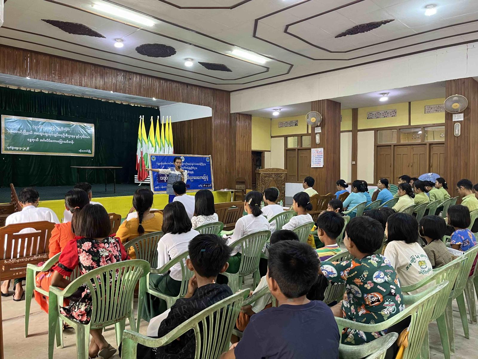 ရှေးဦးစွာ မြို့နယ်စီမံခန့်ခွဲရေးနှင့်အုပ်ချုပ်ရေးကော်မတီဥက္ကဋ္ဌ ဦးအောင်သူရက အဖွင့်အမှာစကားပြောကြားပြီး မြို့နယ်ဘေးအန္တရာယ်ဆိုင်ရာ စီမံခန့်ခွဲမှုဦးစီးဌာနမှ တာဝန်ခံဦးစီးအရာရှိနှင့် ဝန်ထမ်းများက ငလျင်လှုပ်ခတ်ရခြင်း အကြောင်းရင်းများ၊ ငလျင်လှုပ်ခတ်နေစဉ်အတွင်း လိုက်နာဆောင်ရွက်ရမည့် “ဝပ်၊ ကာ၊ ကိုင်” စနစ်များကို လက်တွေ့သရုပ်ပြသခြင်း၊ ငလျင်လှုပ်ခတ်ပြီးနောက် ဆောင်ရွက်ရမည့်အချက်များနှင့် ကြိုတင်ပြင်ဆင်ထားရမည့် အရေးပေါ်သုံးပစ္စည်းများအကြောင်းကို အကျယ်တဝင့် ရှင်းလင်းဟောပြောခဲ့သည်။
