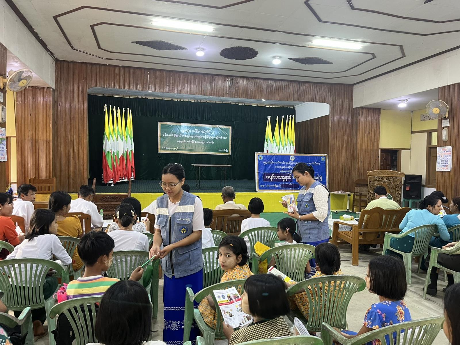 ထို့နောက် တက်ရောက်လာကြသော ဌာနဆိုင်ရာဝန်ထမ်းနှင့် ကျောင်းသား၊ ကျောင်းသူများအား ငလျင်ဘေးအန္တရာယ် အသိပညာပေးလက်ကမ်းစာစောင်များကို တာဝန်ရှိသူများက အခမဲ့ဖြန့်ဝေပေးခဲ့ကြကြောင်း သိရသည်။