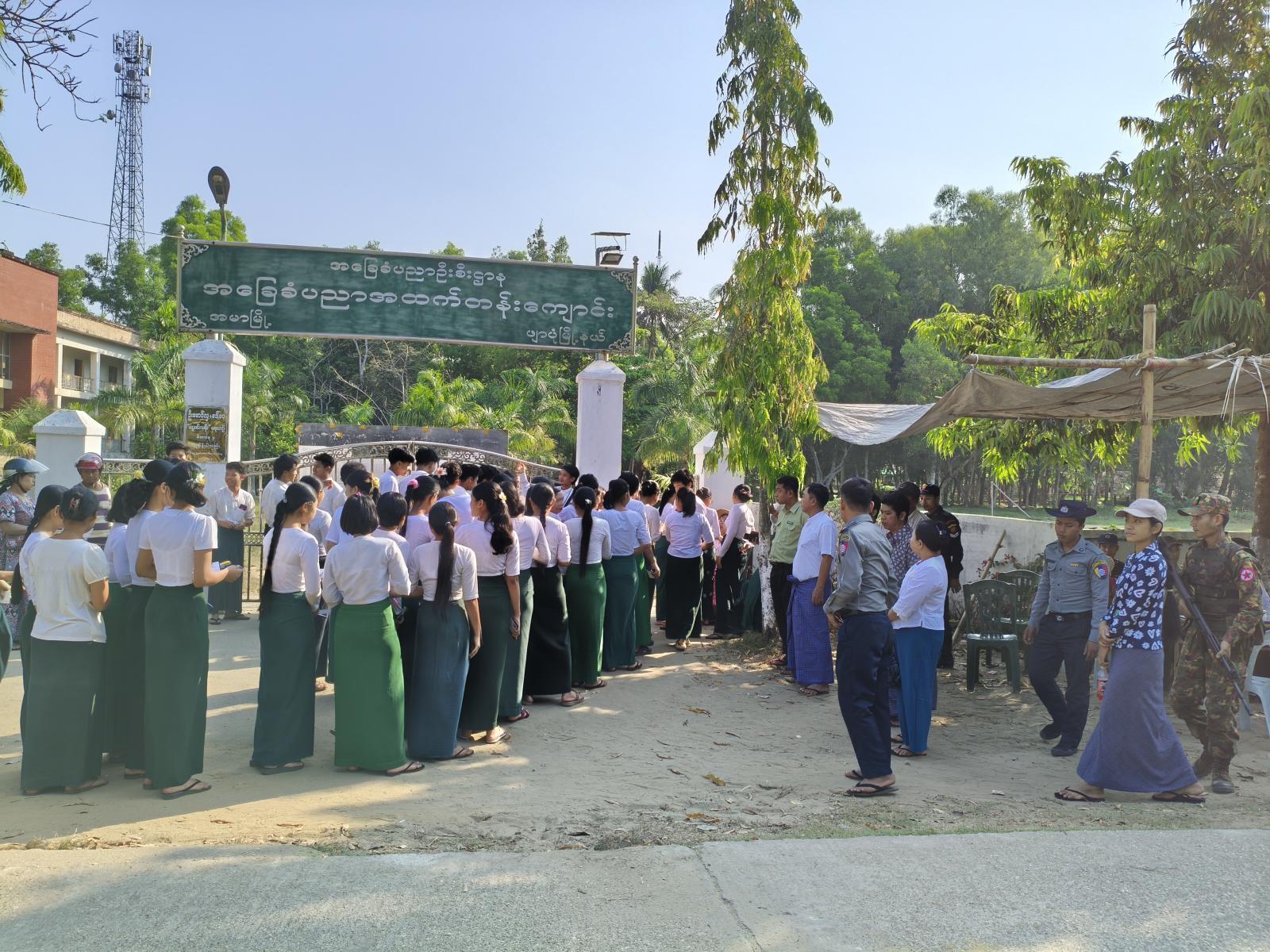 ဧရာဝတီတိုင်းဒေသကြီး၊ ဖျာပုံခရိုင်၊ အမာမြို့တွင် ၂၀၂၅-၂၀၂၆ ပညာသင်နှစ် တက္ကသိုလ်ဝင် စာမေးပွဲကို ရူပဗေဒဘာသာနှင့် သမိုင်းဘာသာရပ်များကို အ.ထ.က(အမာ) စာစစ်ဌာန၌ ယနေ့ နံနက် ၉ နာရီမှစ၍ အေးချမ်းစွာ ဖြေဆိုလျက်ရှိကြောင်း သိရသည်။