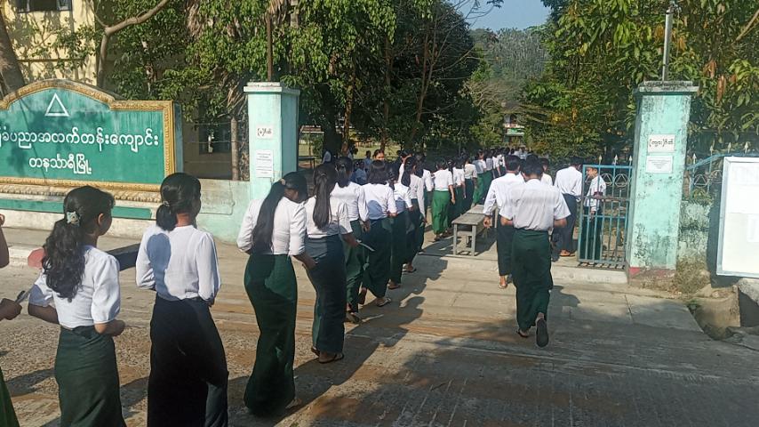၂၀၂၆ခုနှစ် မတ် ၁၆ရက် တက္ကသိုလ်ဝင်တန်းစာမေးပွဲ ပဉ္စမနေ့ရူပဗေဒဘာသာရပ်နှင့် သမိုင်းဘာသာရပ်ကို ဆက်လက်ဖြေဆိုလျက်ရှိရာ တနင်္သာရီတိုင်းဒေသကြီး မြိတ်ခရိုင်၊ တနင်္သာရီမြို့နယ် အ.ထ.က-တနင်္သာရီတွင် ကျောင်းသား/ကျောင်းသူ စုစုပေါင်း ၁၉၁ ဦး ဝင်ရောက်ဖြေဆိုကြောင်း သိရသည်။