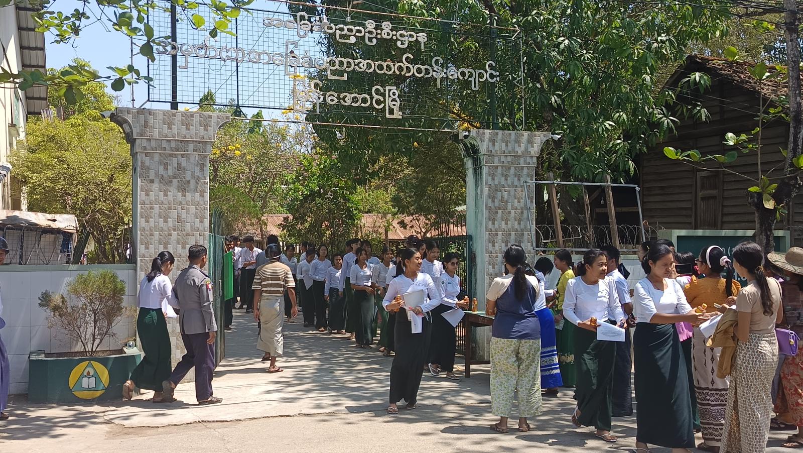 တက္ကသိုလ်ဝင်တန်းစာမေးပွဲ ကျင်းပလျက်ရှိသည့် စာစစ်ဌာနများအား မြန်အောင်ခရိုင် စီမံခန့်ခွဲရေးနှင့် အုပ်ချုပ်ရေးကော်မတီအဖွဲ့ဝင်များ၊ မြို့နယ်စီမံခန့်ခွဲရေးနှင့် အုပ်ချုပ်ရေးကော်မတီ အဖွဲ့ဝင်များ၊မြို့နယ်ပညာရေးမှူး ဦးကျော်တင်ဝင်းနှင့် တာဝန်ရှိသူများက ကျောင်းသား/ ကျောင်းသူများ အေးချမ်းစွာဖြေဆိုနိုင်ရန် လိုက်လံကြည့်ရှုစစ် ဆေးခဲ့ကြပြီး စာမေးပွဲ ကြီးကြပ်ရေးဆရာ/ဆရာမများ၊ ဌာနဆိုင်ရာတာဝန်ရှိသူများက စာစစ်ဌာနအလိုက် စောင့်ကြပ်ပေးလျက်ရှိကြောင်း သိရသည်။