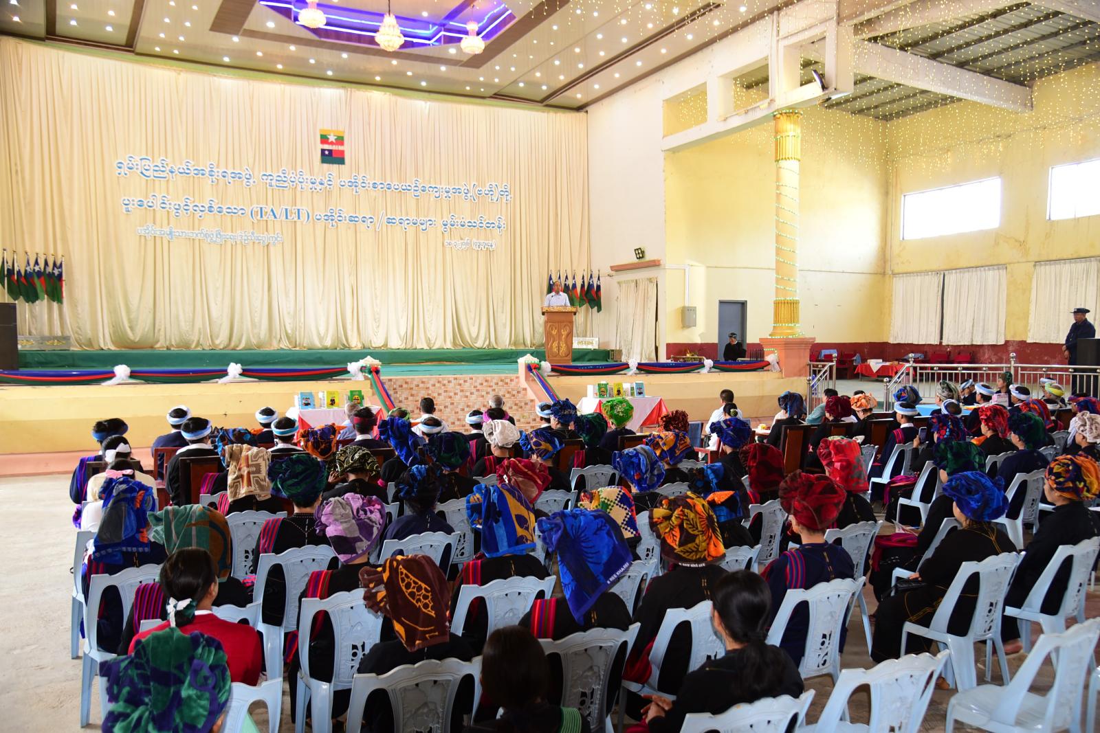 ရှမ်းပြည်နယ်ဝန်ကြီးချုပ် ဦးအောင်အောင်သည် ပြည်နယ်တရားလွှတ်တော်တရားသူကြီး၊ ပြည်နယ်ဝန်ကြီးများ၊ တာဝန်ရှိသူများနှင့်အတူ ယနေ့ နံနက် (၉)နာရီက တောင်ကြီးမြို့၊ ကံကြီးရပ်ကွက်ရှိ ပအိုဝ်းအမျိုးသားဘက်စုံဖွံ့ဖြိုးရေးကွင်း(ဒဲဥ်သီးဗွေ)ကွင်း၌ ကျင်းပသော ရှမ်းပြည်နယ်အစိုးရအဖွဲ့၏ ပံ့ပိုးမှုဖြင့် ပအိုဝ်းစာပေနှင့်ယဥ်ကျေးမှုအဖွဲ့(ဗဟို)ပူးပေါင်းဖွင့်လှစ်သည့် Teaching Assistant(TA)နှင့် Language Teacher(LT)နှင့် အစိုးရစာသင်ကျောင်းများတွင် သင်ကြားနေသည့် ပအိုဝ်းဆရာ/ဆရာမများ မွမ်းမံသင်တန်းဖွင့်ပွဲအခမ်းအနားသို့ တက်ရောက်ခဲ့ကြသည်။