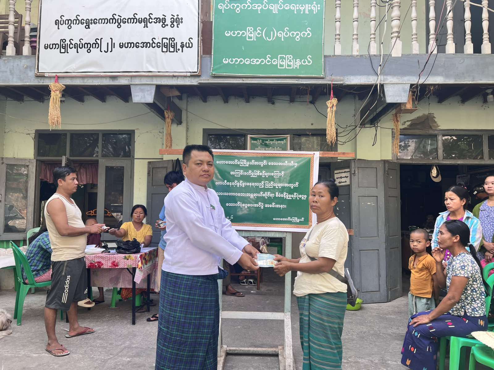 အဆိုပါပေးအပ်မှုအား မဟာအောင်မြေမြို့နယ်၊ မဟာမြိုင် (၂) ရပ်ကွက် အုပ်ချုပ်ရေးမှူးနှင့် အထွေထွေအုပ်ချုပ်ရေးမှူးဦးစီးဌာနမှ တာတန်ရှိသူများက လာရောက်ပေးအပ်၍ အောက်တိုဘာ၊ နိုဝင်ဘာ၊ ဒီဇင်ဘာ သုံးလစာ တစ်လလျှင် နှစ်သောင်းနှုန်းဖြင့် အကြောင်းအမျိုးမျိုးကြောင့် ယာယီနေရပ်စွန့်ခွာပြည်သူ ၅၀ အား ပေးအပ်ခဲ့ကြောင်းသိရသည်။