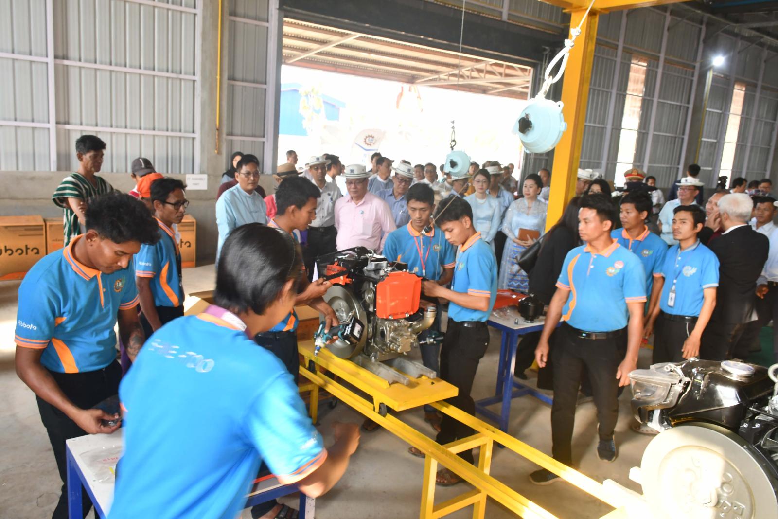 ထို့နောက် ပြည်နယ်ဝန်ကြီးချုပ်နှင့်တာဝန်ရှိသူများသည် စက်ရုံအတွင်း Engine Assembly Line တွင် ကူဘိုတာအင်ဂျင်များ တပ်ဆင်ထုတ်လုပ်နေမှု၊ Power Tiller Assembly Line တွင် လက်တွန်းထွန်စက် Power Tiller များတပ်ဆင်ထုတ်လုပ်နေမှု၊ တပ်ဆင်ထုတ်လုပ်ပြီး လယ်ယာသုံးစက်ပစ္စည်းများ၊ AImega(စက်ရုပ်လက်)ဖြင့် လက်တွန်းထွန်စက်၏ တွဲဘက်ပစ္စည်းများ၊ လယ်ယာသုံးကိရိယာများ တပ်ဆင်ထုတ်လုပ်မှုတို့ကို လှည့်လည်ကြည့်ရှုအားပေးသည်။