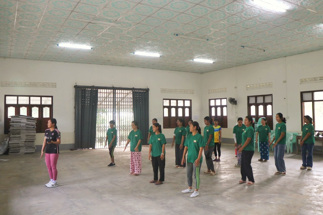 ရှေးဦးစွာ မြို့နယ်အမျိုးသမီးရေးရာအဖွဲ့ဥက္ကဋ္ဌ ဒေါ်နွဲ့နွဲ့ဝင်းက သင်တန်းဖွင့်လှစ်ရခြင်း၏ ရည်ရွယ်ချက်များနှင့်စပ်လျဉ်း၍ အမှာစကားများပြောကြားပြီး သင်တန်းသူများကို အားကစားဝတ်စုံများ ပေးအပ်ခဲ့သည်။ ထို့နောက် မြို့နယ်အားကစားနှင့်ကာယပညာဦးစီးဌာနမှ အကနည်းပြဆရာမက အကနည်းများကို လက်တွေ့သင်ကြားပြသခဲ့သည်။ အဆိုပါသင်တန်းကို မတ်လ ၁၇ ရက်မှ ၂၂ ရက်အထိ နေ့စဉ် ညနေ ၃ နာရီမှ ၅ နာရီအထိ သင်ကြားပေးသွားမည်ဖြစ်ပြီး သင်းတန်းသူ (၃၀) ဦး တက်ရောက်ကြောင်း သိရသည်။