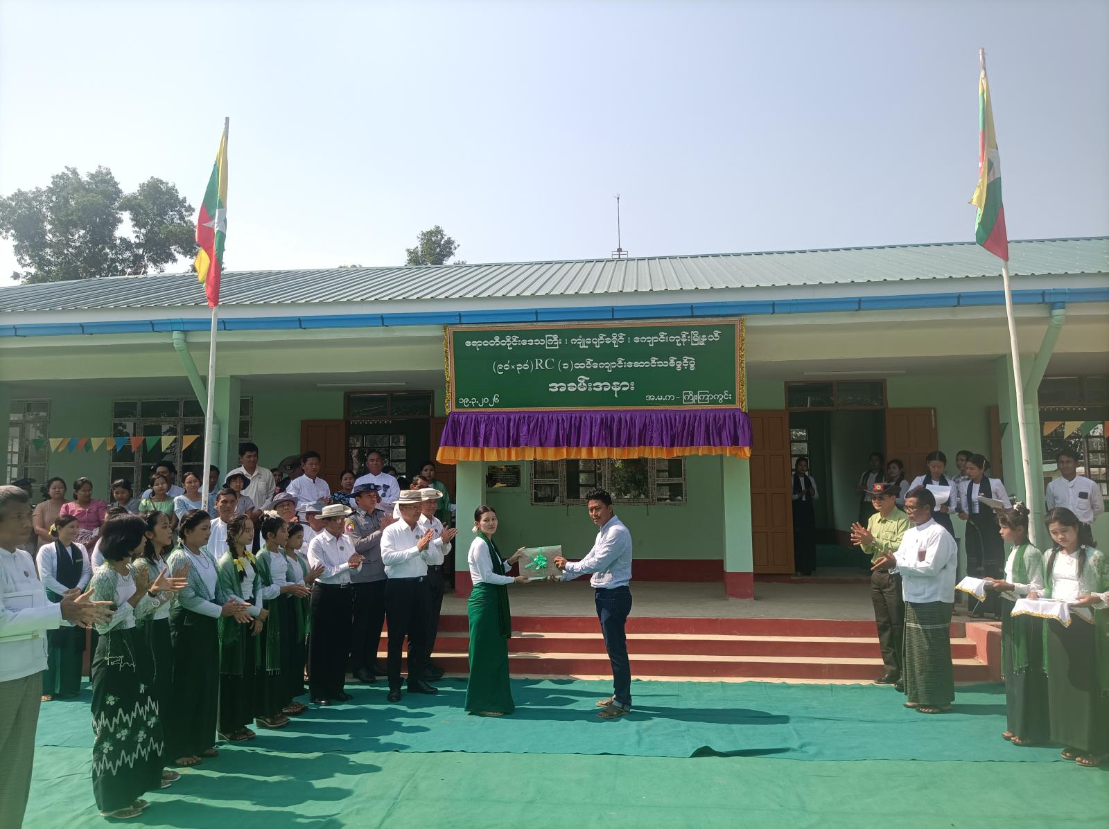 ထို့နောက် "ဝေဟင်မြင့်မိုရ်" ကုမ္ပဏီမှ ကျောင်းဆောင်သစ်နှင့်ပတ်သက်သော စာရွက်စာတမ်း လွှဲပြောင်းပေးအပ်ရာ ကျောင်းအုပ်ဆရာမကြီးက လက်ခံရယူခဲ့သည်။ အဆိုပါကျောင်းဆောင်သစ်သည် အလျား ၉၀ ပေ၊ အနံ ၃၀ ပေ၊ RC (၁)ထပ်ဖြစ်ပြီး၊ ၂၀၂၅-၂၀၂၆ ဘဏ္ဍာရေးနှစ် ငွေလုံးငွေရင်းရန်ပုံငွေ ကျပ်သန်း(၂၂၉.၀)ဖြင့် "ဝေဟင်မြင့်မိုရ်" ကုမ္ပဏီက တာဝန်ယူတည်ဆောက်ခဲ့ကြောင်း သိရသည်။
