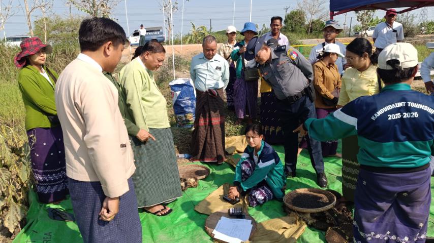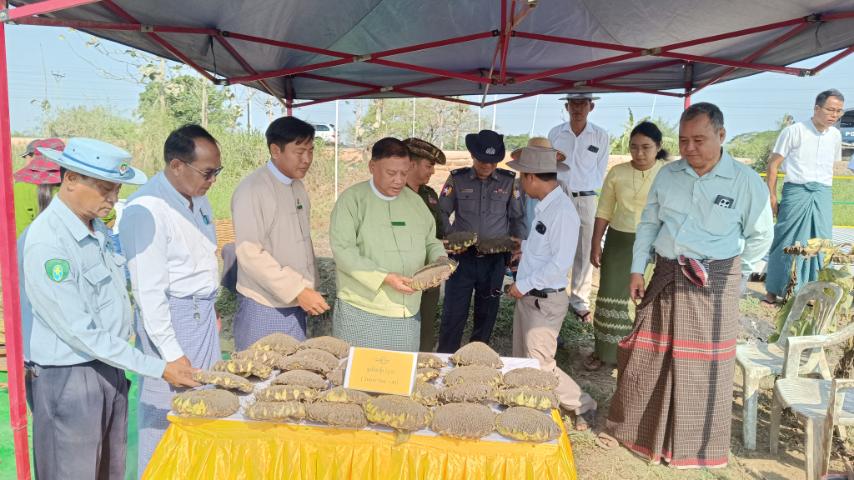 အဆိုပါ ဆီထွက်သီးနှံ ဆောင်းနေကြာစံကွက်ရိတ်သိမ်းရာတွင် မြို့နယ်စီမံခန့်ခွဲရေးနှင့် အုပ်ချုပ် ရေးကော်မတီဥက္ကဋ္ဌဦးမြင့်အောင်နှင့် ကော်မတီဝင်များ၊ မြို့နယ်စိုက်ပျိုးထုတ်လုပ်မှုတိုးတက်မြင့်မားရေး ကော်မတီဝင်များ၊ မြို့နယ်စိုက်ပျိုးရေးဦးစီးမှူးဦးသိန်းနိုင်စိုးနှင့် ဝန်ထမ်းများ၊ ဌာနဆိုင်ရာတာဝန်ရှိသူများ၊ ရရပ်ကွက် ကျေးရွာအုပ်ချုပ်ရေးမှူးများနှင့် ဒေသခံတောင်သူများက ကွင်းယားအရှေ့ကျေးရွာအုပ်စု၊ ကွင်းယားကြီးကျေးရွာရှိ ကွင်းအမှတ် ၁၈၆-C၊ ဦးပိုင်အမှတ် ၉(စ)၊ တောင်သူ ဦးဆန်းဦး၏ လယ်ဧရိယာ (၁၀.၀၀)ဧကရှိ ဆီထွက်သီးနှံ ဆောင်းနေကြာ(Super Sun 41)အား စံကွက်ရိတ်သိမ်းခဲ့ကြရာ တစ်ဧကလျှင် အစိုအထွက်နှုန်း ၅၃.၅၂ တင်း၊ အခြောက်အထွက်နှုန်း ၄၅ တင်း ထွက်ရှိကြောင်းသိရသည်။