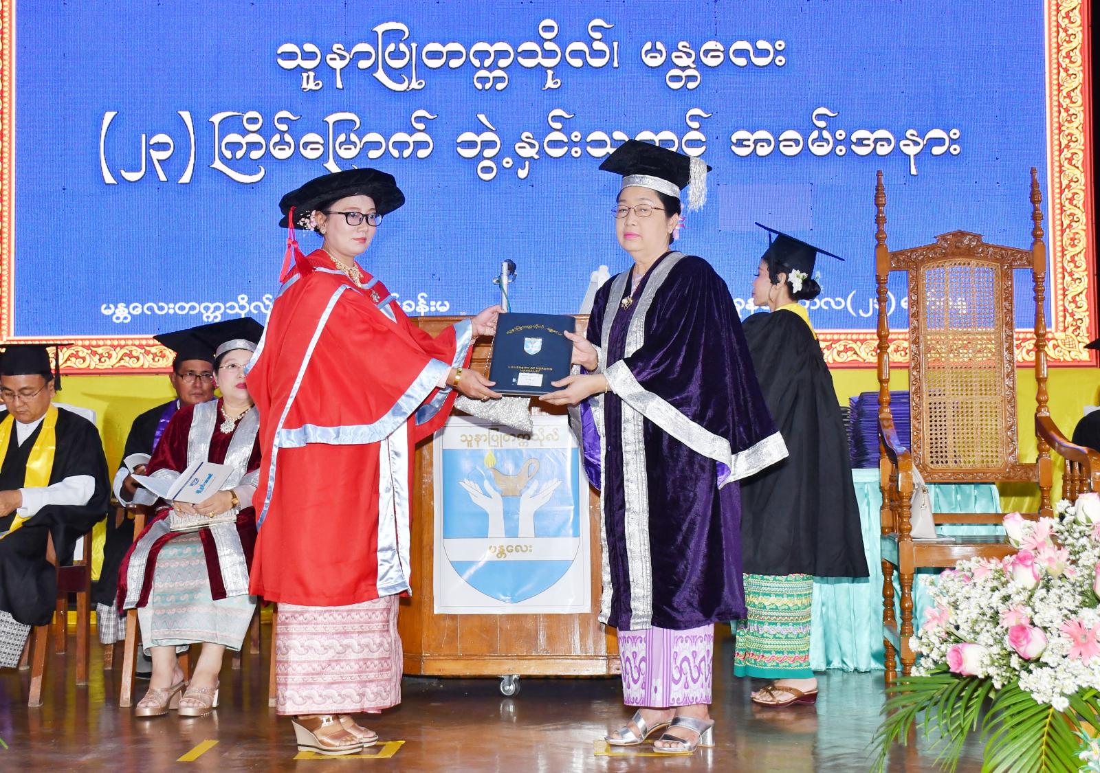 ကျန်းမာရေးဝန်ကြီးဌာန ကျန်းမာရေးလူ့စွမ်းအားအရင်းအမြစ်ဦးစီးဌာန သူနာပြုတက္ကသိုလ်(မန္တလေး)၏ (၂၃)ကြိမ် နှင့် (၂၄)ကြိမ်မြောက်ဘွဲ့နှင်းသဘင်အခမ်းအနားကို မတ်လ ၂၁ရက်နေ့က မန္တလေးတက္ကသိုလ် ဘွဲ့နှင်းသဘင်ခန်းမတွင် ကျင်းပသည်။