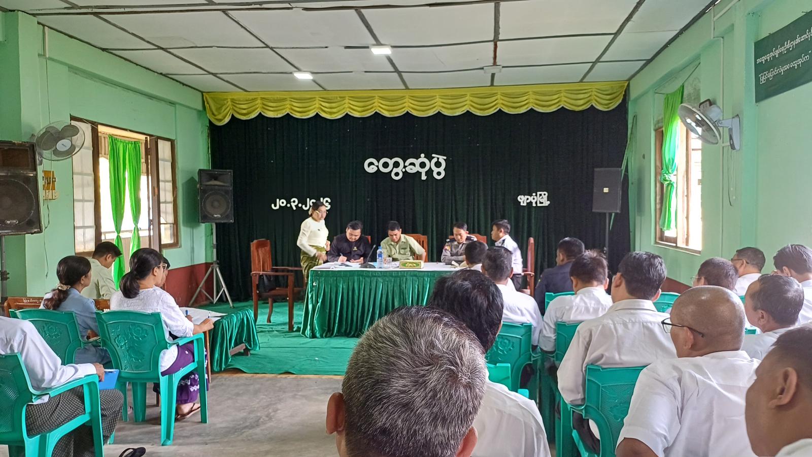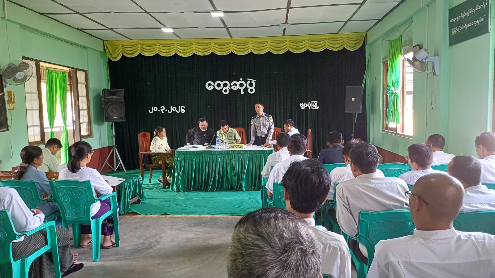 ဆက်လက်၍ မြို့နယ်စီမံခန့်ခွဲရေးနှင့်အုပ်ချုပ်ရေးကော်မတီအဖွဲ့ဝင် မြို့နယ်ရဲတပ်ဖွဲ့မှူးက လုံခြုံရေးအစီအမံများ ဆောင်ရွက်ထားရှိမည့်အခြေအနေတို့အား ရှင်းလင်းဆွေးနွေးခဲ့ပြီး တက်ရောက်လာသည့် မြို့နယ်အဆင့်ဌာနများက သက်ဆိုင်ရာကော်မတီများအလိုက် မြန်မာ့ရိုးရာ မဟာသင်္ကြန်ပွဲတော် စည်ကားသိုက်မြိုက်စွာ ကျင်းပနိုင်ရေးအတွက် ကြိုတင်ပြင်ဆင်ဆောင်ရွက်သွားမည့် လုပ်ငန်းများအလိုက် တင်ပြဆွေးနွေးခဲ့ရာ မြို့နယ်စီမံခန့်ခွဲရေးနှင့်အုပ်ချုပ်ရေးကော်မတီဥက္ကဋ္ဌ ဦးမောင်မောင်ဝင်းက လိုအပ်သည်များကို ဖြည့်စွက်ညှိနှိုင်းပေးခဲ့ကြောင်း သိရသည်။