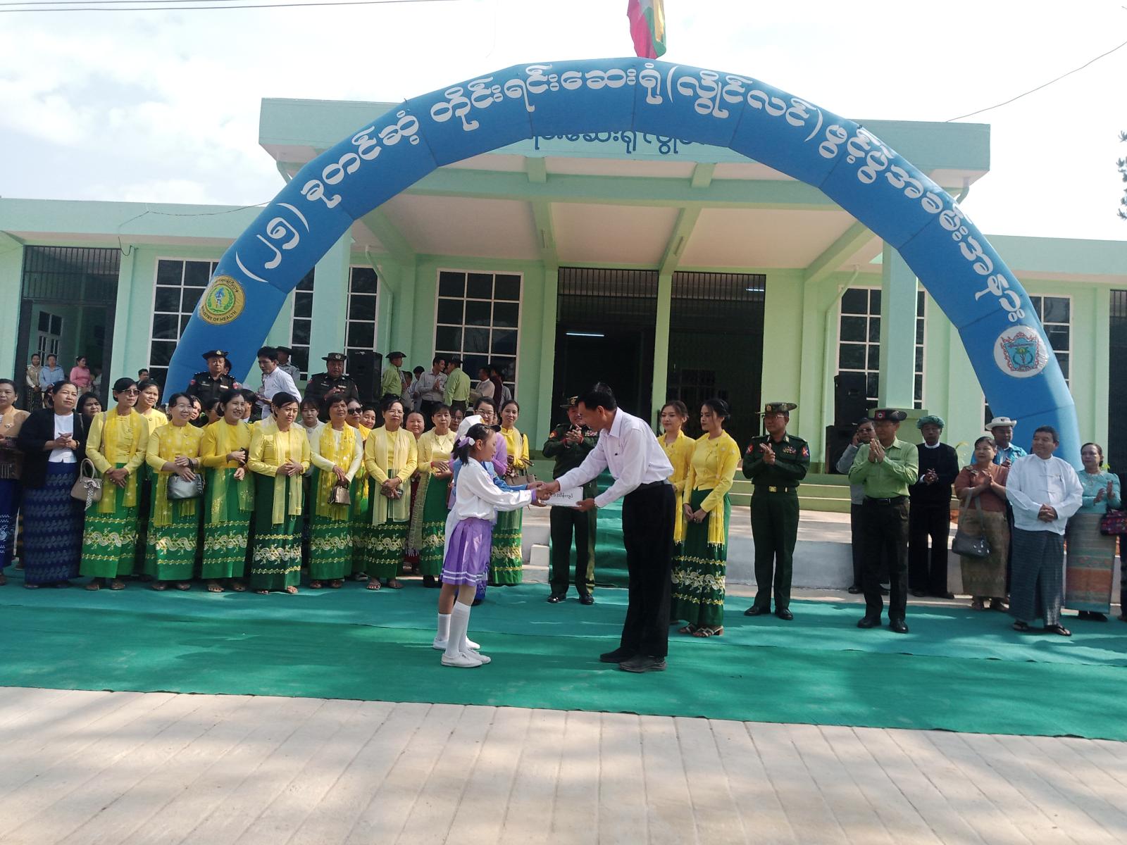 ဦးစွာ ဆေးရုံသစ်အား ပြည်နယ်အစိုးရအဖွဲ့ ပြည်နယ်လူမှုရေးရာဝန်ကြီး ဦးမင်းမင်းလွင်၊ အရှေ့အလယ်ပိုင်းတိုင်း စစ်ဌာနချုပ် ဒုတိယတိုင်းမှုး ဗိုလ်မှုးချုပ် အောင်ကိုဝင်းနှင့် တာဝန်ရှိသူများမှ ဖဲကြိုးဖြတ်၍ ဖွင့်လှစ်ပေးသည်။ ယင်းနောက် ပြည်နယ်အစိုးရအဖွဲ့ ဝန်ကြီးနှင့်တာဝန်ရှိသူများမှ ဘင်ခရာအဖွဲ့၊ ပန်းဖွားအကအဖွဲ့နှင့် ကိန္နရီ၊ ကိန္နရာအကအဖွဲ့များအား ဂုဏ်ပြုဆုများချီးမြှင့်ပေးပြီးနောက် ယဉ်ကျေးမှုအဖွဲ့များနှင့် စုပေါင်းမှတ်တမ်းဓာတ်ပုံရိုက်ကူးပြီး ကမ္မည်းမော်ကွန်း အားအမွေးနံ့သာရည်နှင့် ပက်ဖြန်းပေးခဲ့ကြသည်။ ယင်းနောက် ဒုတိယပိုင်းအစီအစဉ်ကို ဆက်လက်ကျင်းပရာပြည်နယ် လူမှုရေးရာဝန်ကြီးက ဂုဏ်ပြုအမှာစကားပြောကြားခြင်း၊ တိုင်းရင်းဆေးပညာဦးစီးဌာနမှ ညွန်ကြားရေးမှုးချုပ် ဒေါက်တာစုစုဒွေးမှ ဆေးရုံသစ်ဖွင့်လှစ်ပေးရခြင်းတို့ကို ရှင်းလင်းပြောကြားသည်။ ထို့နောက် ဒေသခံတစ်ဦးက ကျေးဇူးတင်စကား ပြန်လည်ပြောကြားခဲ့သည်။ ယင်းနောက် ဆေးရုံသစ်ဖွင့်ပွဲအထိမ်းအမှတ် အမှတ်တရလက်ဆောင်များကို တာဝန်ရှိသူများက ပြည်နယ်ဝန်ကြီးနှင့် အကြီးအကဲများထံ နေရာအရောက်ပေးအပ်ကြသည်။ ထို့နောက် ပြည်နယ်ဝန်ကြီး၊ ဒုတိယတိုင်းမှူးနှင့်ဧည့်သည်များက ဆေးရုံသစ်အား လှည့်လည်ကြည့်ရှု့စစ်ဆေးခဲ့ကြကြောင်း သိရသည်။