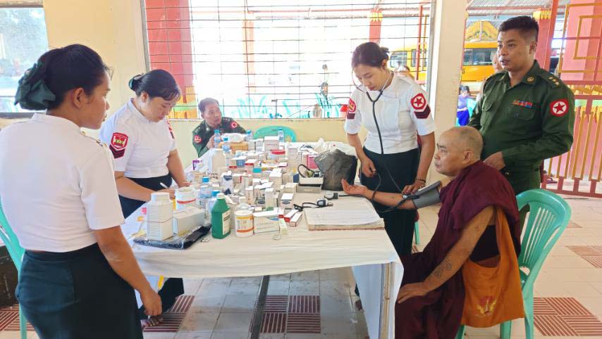 သံဃာတော်များ၊ သာသနာ့နွယ်ဝင်သီလရှင်များနှင့်ကျေးရွာနေပြည်သူများအား ကျန်းမာရေးစောင့်ရှောက်မှုလုပ်ငန်းများ ဆောင်ရွက်ပေးခြင်းကို မတ်လ (၂၁) ရက်နေ့က ရန်ကုန်တိုင်း စစ်ဌာနချုပ်၊ အမှတ် (၆) စစ်မြေပြင်ဆေးတပ်ရင်းနယ်လှည့်ဆေးကုသရေးအဖွဲ့မှ မှော်ဘီခရိုင်၊ ထန်းတပင်မြို့နယ်၊ ကျောင်းကုန်းကျေးရွာ၊ ရတနာသိင်္ဂီဘုန်းတော်ကြီးကျောင်း အခြေပြု၍ ကွင်းဆင်းကုသဆောင်ရွက်ပေးခဲ့ကြသည်။