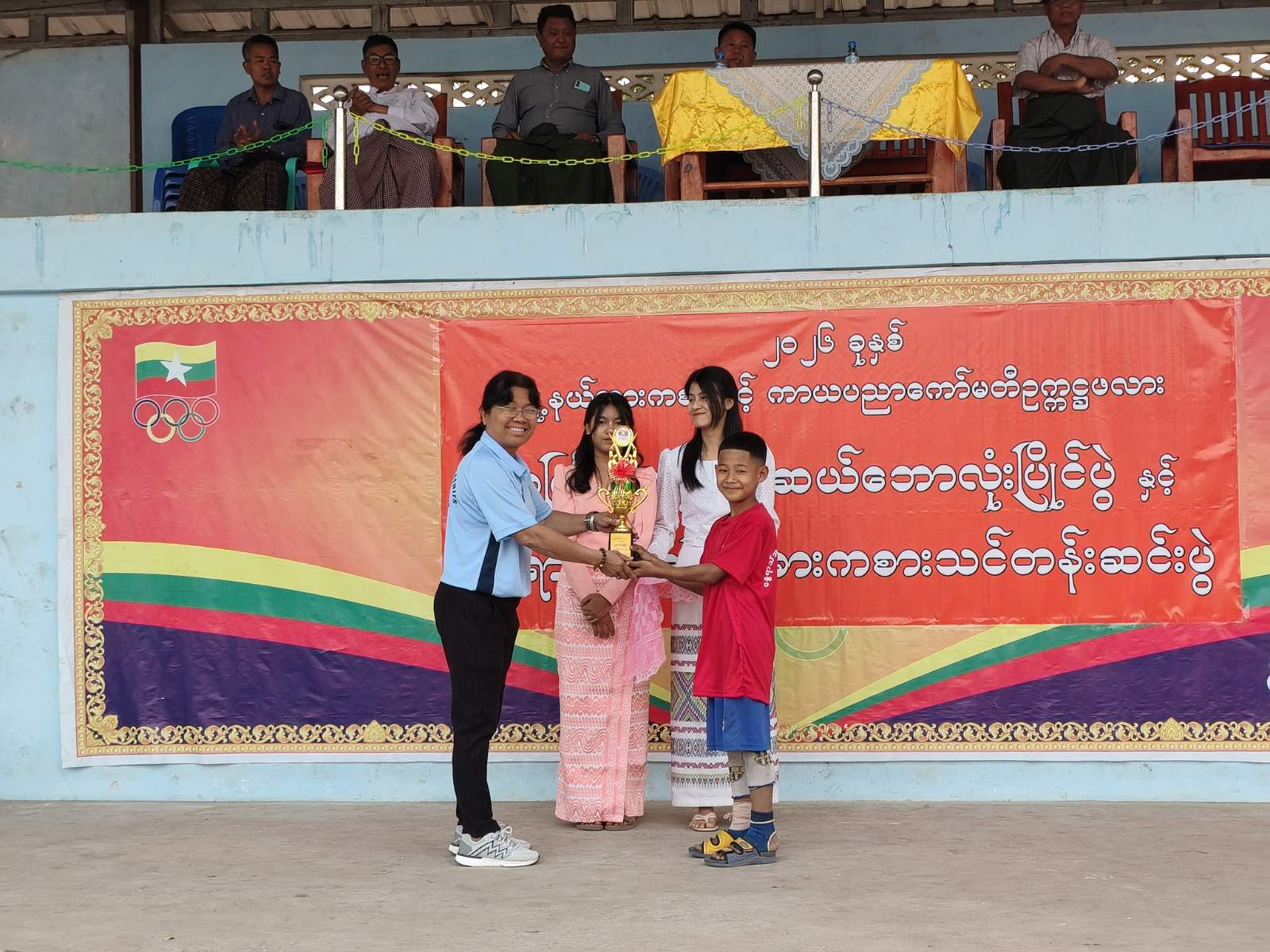 ရှေးဦးစွာ နွေရာသီအခြေခံအားကစားသင်တန်းမှ သင်တန်းနည်းပြများအား ဂုဏ်ပြုလက်ဆောင်ပေးအပ်ပြီး ဘောလုံး၊ ကြက်တောင်၊ ပြေးခုန်ပစ်၊ ပိုက်ကျော်ခြင်းနှင့် ဘော်လီဘော အားကစားသင်တန်းမှ သင်တန်းသား၊ သင်တန်းသူများအား သင်တန်းဆင်းလက်မှတ်များ ပေးအပ်ရာသင်တန်းသား၊ သင်တန်းသူအားကစားလူငယ်များက ဘောလုံးအားကစားနည်းကို သရုပ်ပြသလေ့ကျင့်ခဲ့သည်။ ဆက်လက်၍ ဖူဆယ်ဘောလုံးပြိုင်ပွဲတွင် ပထမဆုရရှိသော ကိုမင်းအောင်(KMA) အသင်းအားငွေသားနှင့် တံခွန်စိုက်ဒိုင်းဆု၊ ဒုတိယဆုရရှိသော လားဟူ(FC) အသင်းအားငွေသားဆု၊ ဖူဆယ်ဘောလုံးပြိုင်ပွဲတွင် အကောင်းဆုံး အားကစားသမားဆုနှစ်ဆုနှင့် ဂိုးသွင်းအများဆုံး ကစားသမားဆုများကို မြို့နယ်အားကစားနှင့်ကာယပညာကော်မတီဥက္ကဋ္ဌ၊ မြို့နယ်အုပ်ချုပ်ရေးမှူး ဦးဟန်ဝင်းလတ်နှင့် ဌာနဆိုင်ရာတာဝန်ရှိသူများက အသီးသီးပေးအပ်ခဲ့ကြောင်း သိရသည်။