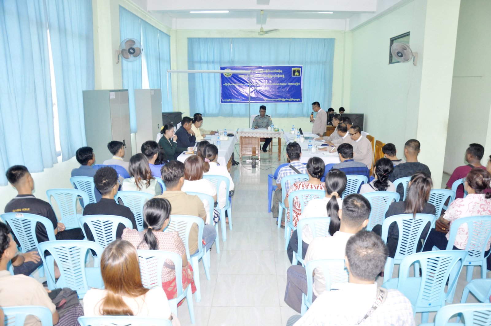 ထို့နောက် လှိုင်သာယာ (အနောက်ပိုင်း) မြို့နယ် အခွန်ဦးစီးအရာရှိ ဦးရဲထွန်းက ဗဟိုမိုဘိုင်းစက်ပစ္စည်း သက်သေခံမှတ်ပုံတင်စနစ် (CEIR) စနစ်ဆိုင်ရာနှင့် ပတ်သက်သည့် အကြောင်းအရာများကို ပြည်သူများအား (Power Point) ဖြင့် အသိပညာပေး ရှင်းလင်းပြောကြားသည်။