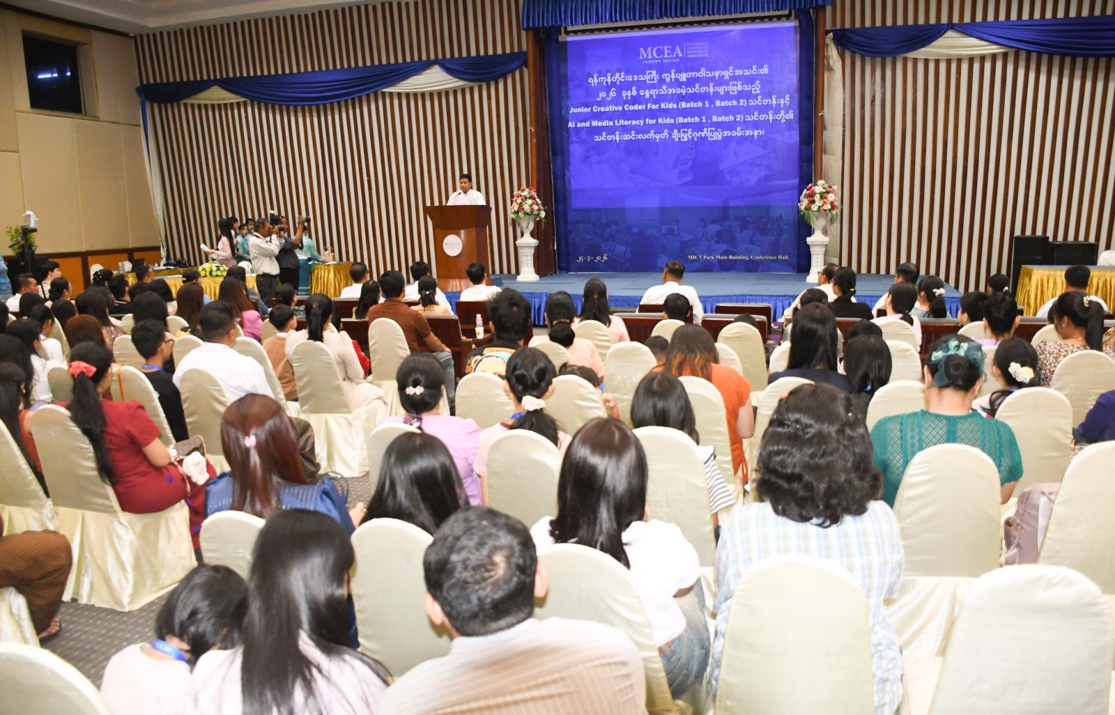 ရန်ကုန်တိုင်းဒေသကြီး၊ ကွန်ပျူတာဝါသနာရှင်အသင်း၏ မိတ်ဖက်အဖွဲ့အစည်းများနှင့် နားလည်မှုစာချွန်လွှာ (MOU) ရေးထိုးခြင်းနှင့် ရန်ကုန်တိုင်းဒေသကြီး ကွန်ပျူတာဝါသနာရှင်အသင်းမှ ကြီးမှူးဖွင့်လှစ်သော ၂ဝ၂၆ ခုနှစ်၊ နွေရာသီအခမဲ့သင်တန်းများဖြစ်သည့် Junoir Creative Coding For Kids (Batch 1, Batch 2) 4 Al And Media Literacy For Kids (Batch 1, Batch 2)တို့၏ သင်တန်းဆင်းပွဲ အခမ်းအနားကို ယမန်နေ့ နံနက်ပိုင်းတွင် MICT Park Main Building, Conference Hall ၌ ကျင်းပသည်။