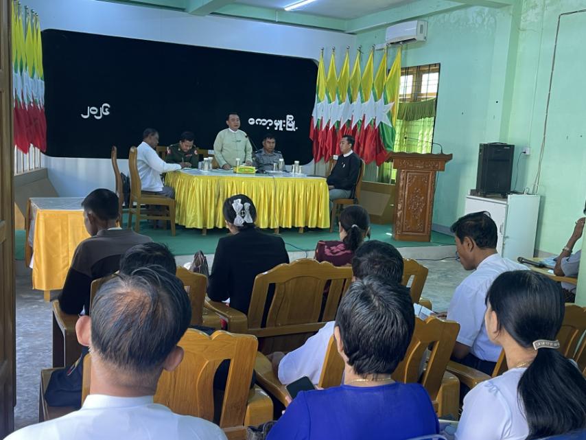 အစည်းအဝေးတွင် မြို့နယ်စီမံခန့်ခွဲရေးနှင့်အုပ်ချုပ်ရေးကော်မတီဥက္ကဋ္ဌ ဦးမျိုးမင်းက Seeder ဖိုးကြွေးကျန်များ ကောက်ခံပေးသွင်းကြရန်၊ ပြည်သူ့စစ်မှုထမ်းအမှတ်စဉ်(၄/၂၀၂၆) အတွက် သင်တန်းသားအမည်စာရင်းအားပုံစံ(၁)ဖြင့် ပြုစုပေးပို့ကြရန်၊ စစ်မှုထမ်းကိစ္စများနှင့်ပတ်သက်၍ ငွေကြေးပါဝင်ပတ်သက်မှုမရှိစေရေး ဆောင်ရွက်ရန်၊ စက်သုံးဆီချွေတာစွာသုံးစွဲရေး ပြည်သူလူထု ကျယ်ကျယ်ပြန့်ပြန့်သိရှိအောင် အသိပညာပေးမှုများ ဆောင်ရွက်ကြရန်၊ မဟာင်္ကြန်ပွဲတော် ကျင်းပနိုင်ရေးဆပ်ကော်မတီများအနေဖြင့် သက်ဆိုင်ရာလုပ်ငန်းတာဝန်များအား ပေါင်းစပ်ဆောင်ရွက်၍ လိုအပ်သည်များကို မြို့နယ်ကော်မတီသို့ ပြန်လည်တင်ပြကြရန်ပြောကြားခဲ့ကြောင်း သိရသည်။