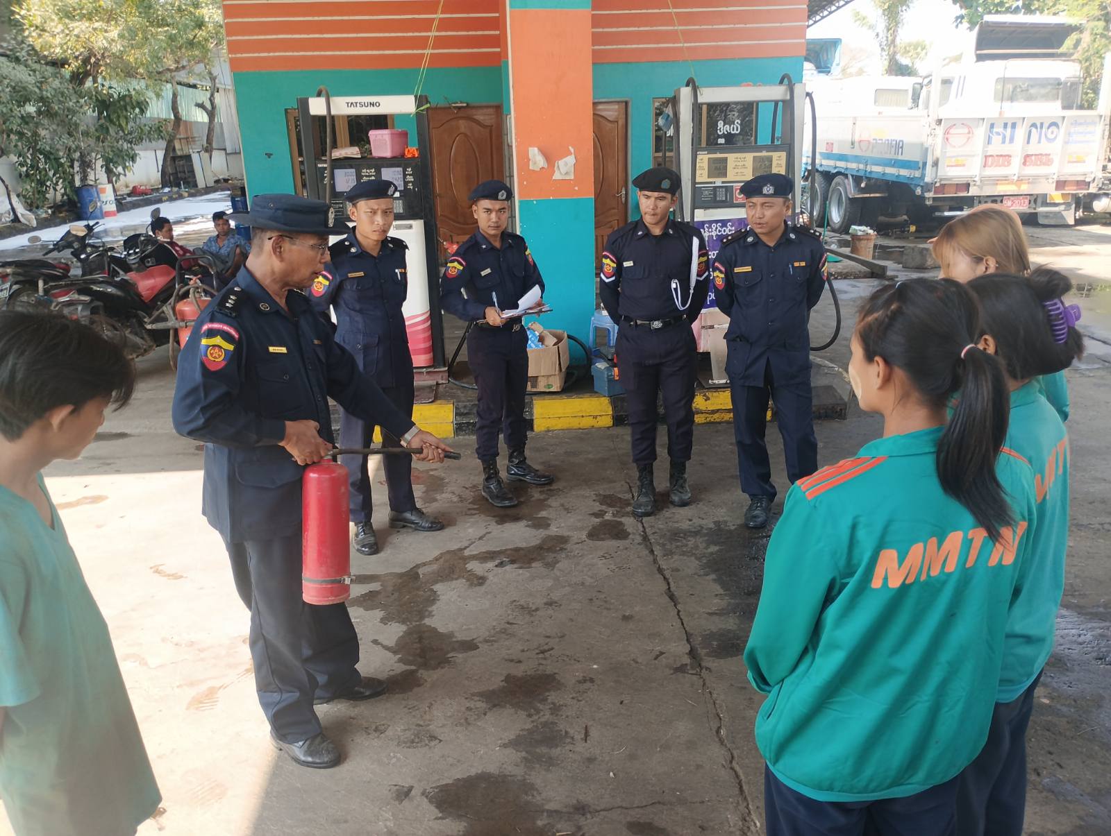 ထိုသို့ဆောင်ရွက်ရာတွင် မီးဘေးအန္တရာယ် ပေါ်ပေါက်လာပါက အရေးပေါ်အသုံးပြုနိုင်ရန် မီးသတ်ဆေးဘူးထားရှိမှုအခြေအနေများ၊ ရေသိုလှောင်ထားမှုအခြေအနေများ၊ ဂိုဒေါင်များတွင် ပစ္စည်းသိုလှောင်ထားမှုအခြေအနေများ၊ လောင်စာဆီသိုလှောင်မှုအခြေအနေများ၊ လျှပ်စစ်သွယ်တန်းမှုအခြေအနေများ၊ လူနေအိမ်များတွင် ချက်ပြုတ်သည့်နေရာများအား စစ်ဆေးခဲ့ခြင်းဖြစ်သည်။ မီးဘေးအန္တရာယ် ပေါ်ပေါက်လာပါက မီးသတ်ဆေးဘူး အသုံးပြုနည်းများကိုလည်း မြို့နယ်မီးသတ်ဦးစီးဌာနမှ ဝန်ထမ်းများက လက်တွေ့သရုပ်ပြခြင်းများ ဆောင်ရွက်ခဲ့ကြောင်း သိရသည်။
