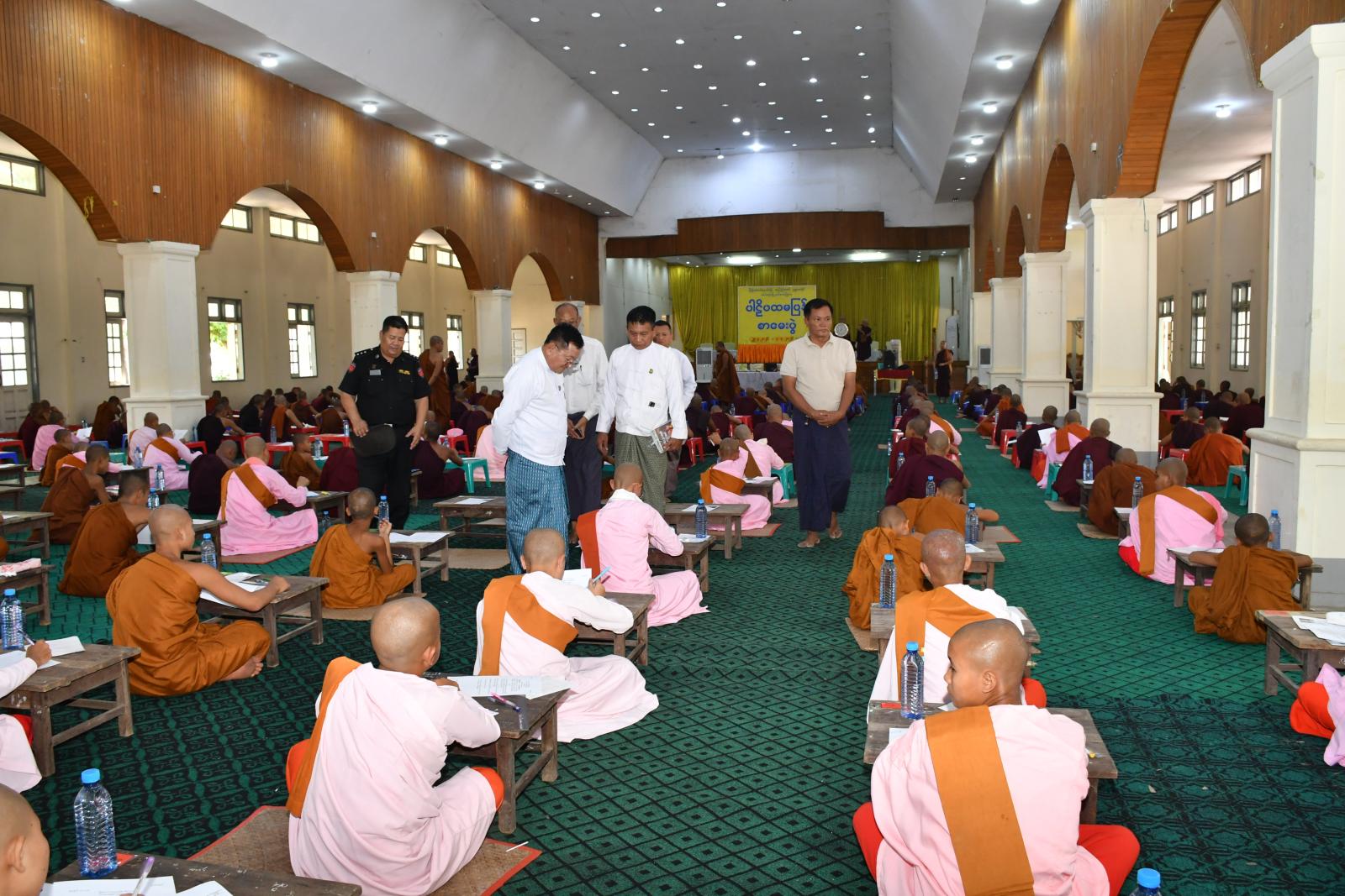 ထို့နောက် နေပြည်တော်ကောင်စီဝင် ဦးမြင့်စိုးနှင့် တာဝန်ရှိသူများ မြို့နယ်အောင်ဆန်းခန်းမတွင် ပါဠိပထမပြန်စာမေးပွဲတွင် ဖြေဆိုတော်မူကြသော ရဟန်း၊ သံဃာ၊ သာမဏေနှင့် သီလရှင်ဆရာ လေးများအား ဖူးမြော်ကြည်ညိုအားပေးခဲ့ပြီးနောက် ပါဠိပထမပြန်စာမေးပွဲကြီးကြပ် ဆရာတော်ကြီးများအား ဖူးမြော်ကြည်ညိုကာ နဝကမ္မဝတ္ထုငွေများ ဆက်ကပ်လှူဒါန်းခဲ့ပြီး၊ ပါဠိပထမပြန်စာမေးပွဲတွင် ကျန်းမာရေးစောင့်ရှောက်ပေးမှုအား ကြည့်ရှုစစ်ဆေးခဲ့သည်။