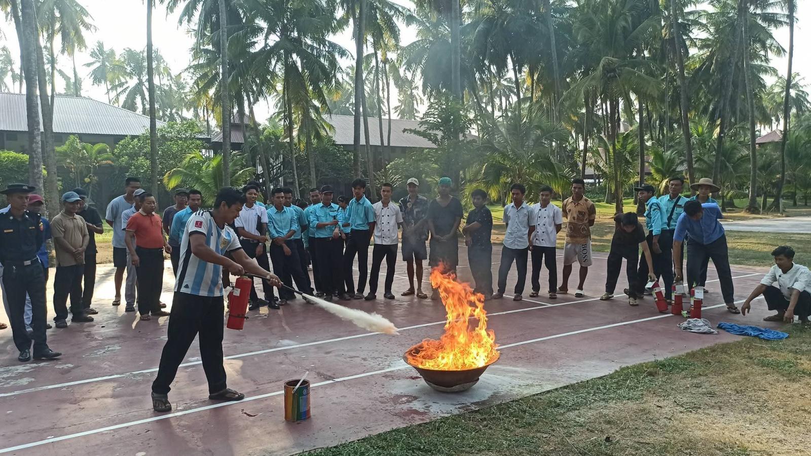ဦးစွာ ငွေဆောင်မြို့မီးသတ်ဦးစီးဌာန၊ တာဝန်ခံမီးသတ်ဦးစီးမှူး ဦးသန့်ဇင်ဦးမှ ဟိုတယ်တာဝန်ခံများနှင့် ဟိုတယ်ဝန်ထမ်းများအား မီးဘေးအန္တရာယ်ကြိုတင်ကာကွယ်ရေး ဆောင်ရွက်ထားရှိရမည့် အချက်များကို ရှင်းလင်းပြောကြားပြီး တက်ရောက်လာသူများက သိရှိလိုသည်များကို မေးမြန်းရာ ပြန်လည်ရှင်းလင်းဖြေကြားပေးခဲ့ကြောင်း သိရသည်။ ထို့နောက် တာဝန်ခံမီးသတ်ဦးစီးမှူးနှင့် သန္ဓေတပ်ဖွဲ့ဝင်များက မီးသတ်ဆေးဘူးကို နည်းစနစ်မှန်ကန်စွာ ကိုင်တွယ်အသုံးပြုနည်းနှင့် ဆီမီးလောင်မှုအား မီးသတ်ဆေးဘူးနှင့် မီးငြှိမ်းသတ်ခြင်းတို့ကို လက်တွေ့သရုပ်ပြသခဲ့ရာ ဟိုတယ်ဝန်ထမ်းများက ကိုယ်တိုင်ပါဝင် ဆောင်ရွက်ခဲ့ကြကြောင်း သတင်းရရှိသည်။