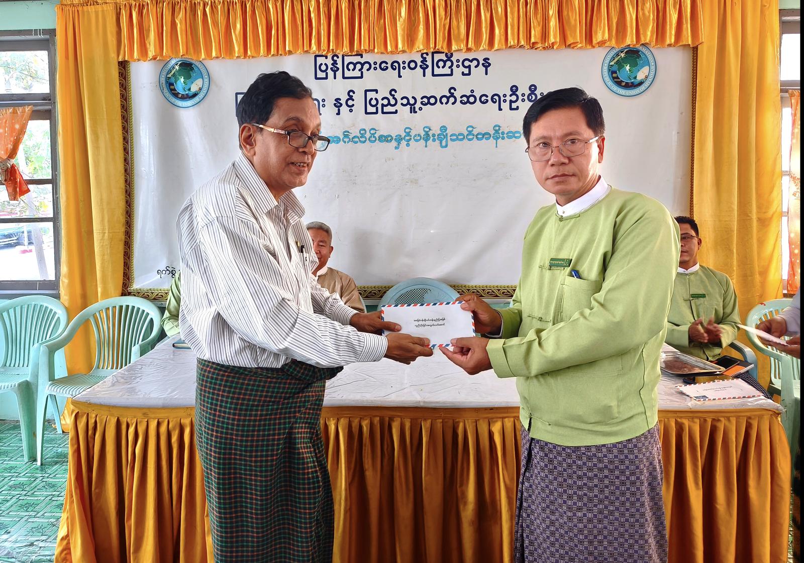 သင်တန်းဆင်းပွဲတွင် မြို့နယ်ပြန်ကြားရေးနှင့်ပြည်သူ့ဆက်ဆံရေးဦးစီးဌာန ဦးစီးအရာရှိ ဒေါ်သင်းသင်းက သင်တန်းနည်းပြဆရာ/မများကို ကျေးဇူးတင်စကားပြောကြားပြီး သင်တန်းထူးချွန်ဆုချီးမြှင့်ခြင်းနှင့်ပတ်သက်၍ ရှင်းလင်းပြောကြားသည်။ ထို့နောက် မြို့နယ်စီမံခန့်ခွဲရေးနှင့်အုပ်ချုပ်ရေးကော်မတီဥက္ကဋ္ဌ ဦးမျိုးသက်ကျော်နှင့် ကော်မတီဝင်များ၊ မြို့နယ်ပညာရေးမှူးဦးလှထွန်းနှင့် ဌာနဆိုင်ရာများက သင်တန်းနည်းပြများနှင့် ဆုရ ကျောင်းသား/ သူများကို အမှတ်တရလက်ဆောင်များနှင့် ဆုများချီးမြှင့်သည်။ ဆက်လက်ပြီး မြို့နယ်စီမံခန့်ခွဲရေးနှင့် အုပ်ချုပ်ရေးကော်မတီဥက္ကဋ္ဌနှင့် ကော်မတီဝင်များက သင်တန်းပြီးမြောက်သည်အထိ တက်ရောက်ခဲ့သော သင်တန်းသား/သင်တန်းသူများအား ဂုဏ်ပြုငွေတစ်ဦးလျှင် ကျပ် ၁၀၀၀၀ ချီးမြှင့်ပေးခဲ့ကြောင်းသိရသည်။