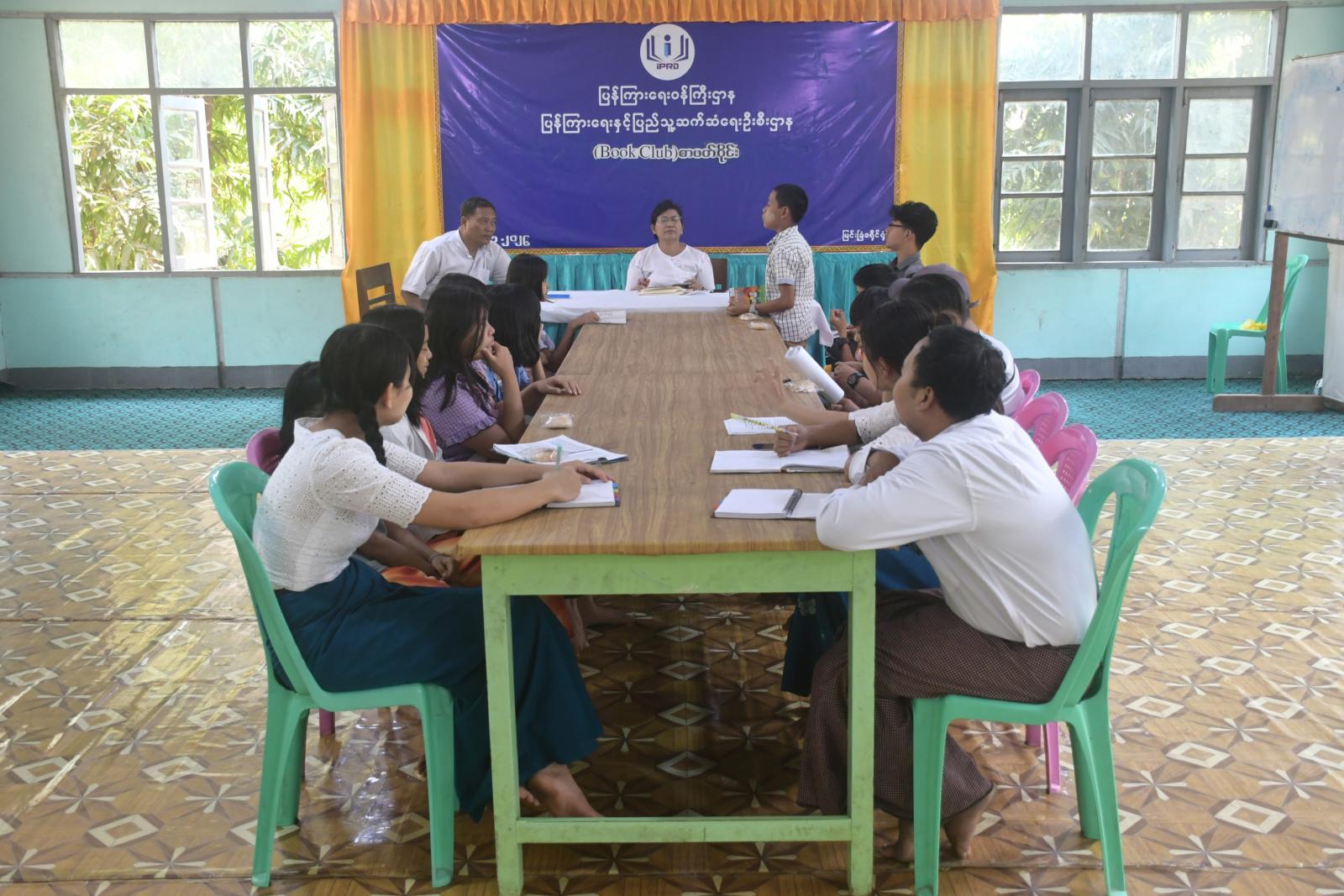 မန္တလေးတိုင်းဒေသကြီး မြင်းခြံခရိုင် ပြန်ကြားရေးနှင့်ပြည်သူ့ဆက်ဆံရေးဦးစီးဌာန Community Centre ခန်းမ(လူထုအခြေပြုဗဟိုဌာန)၌ (Book Club) စာဖတ်ဝိုင်းကို ယနေ့ နံနက် ၁၁ နာရီခွဲက ကျင်းပသည်။